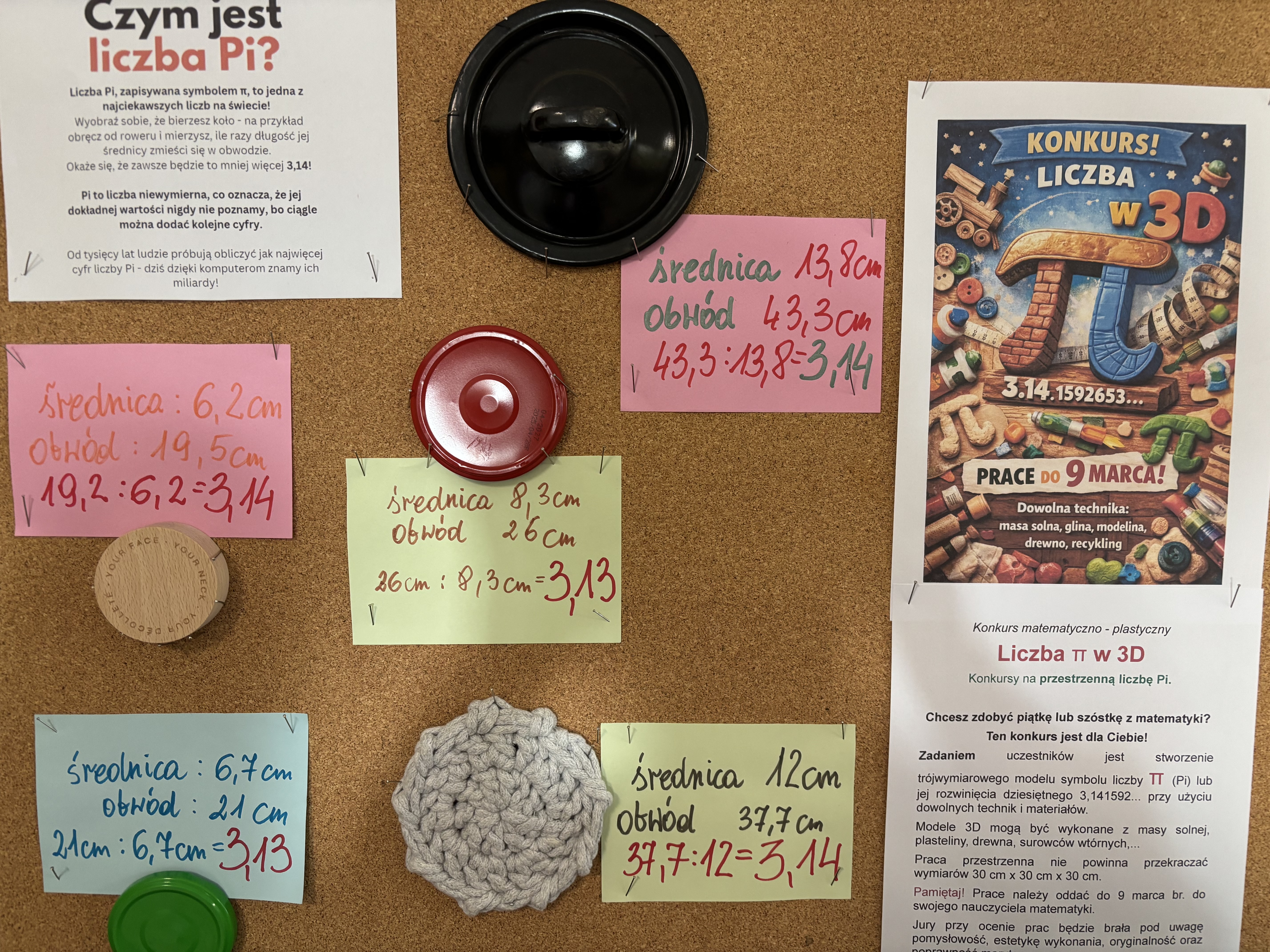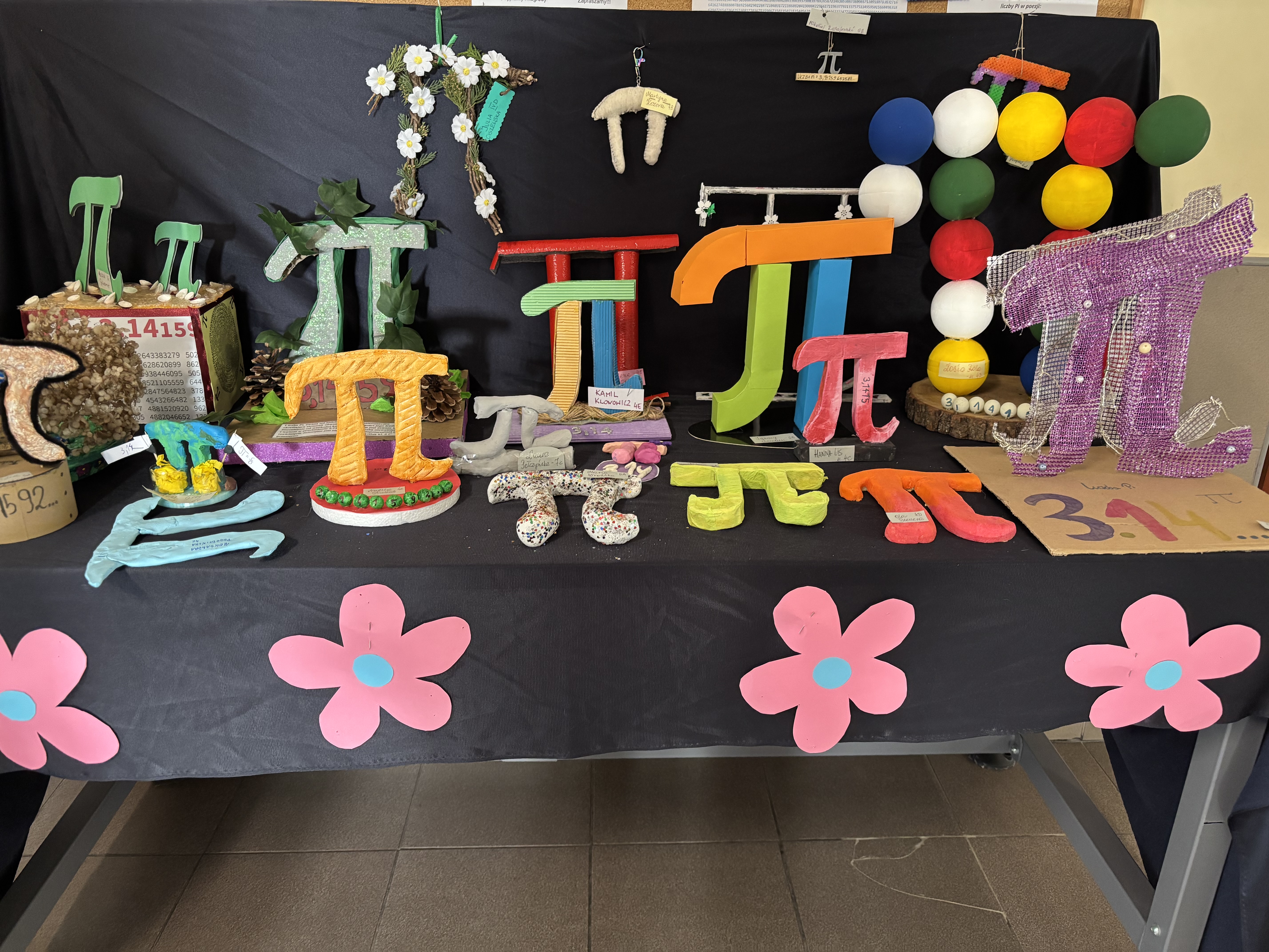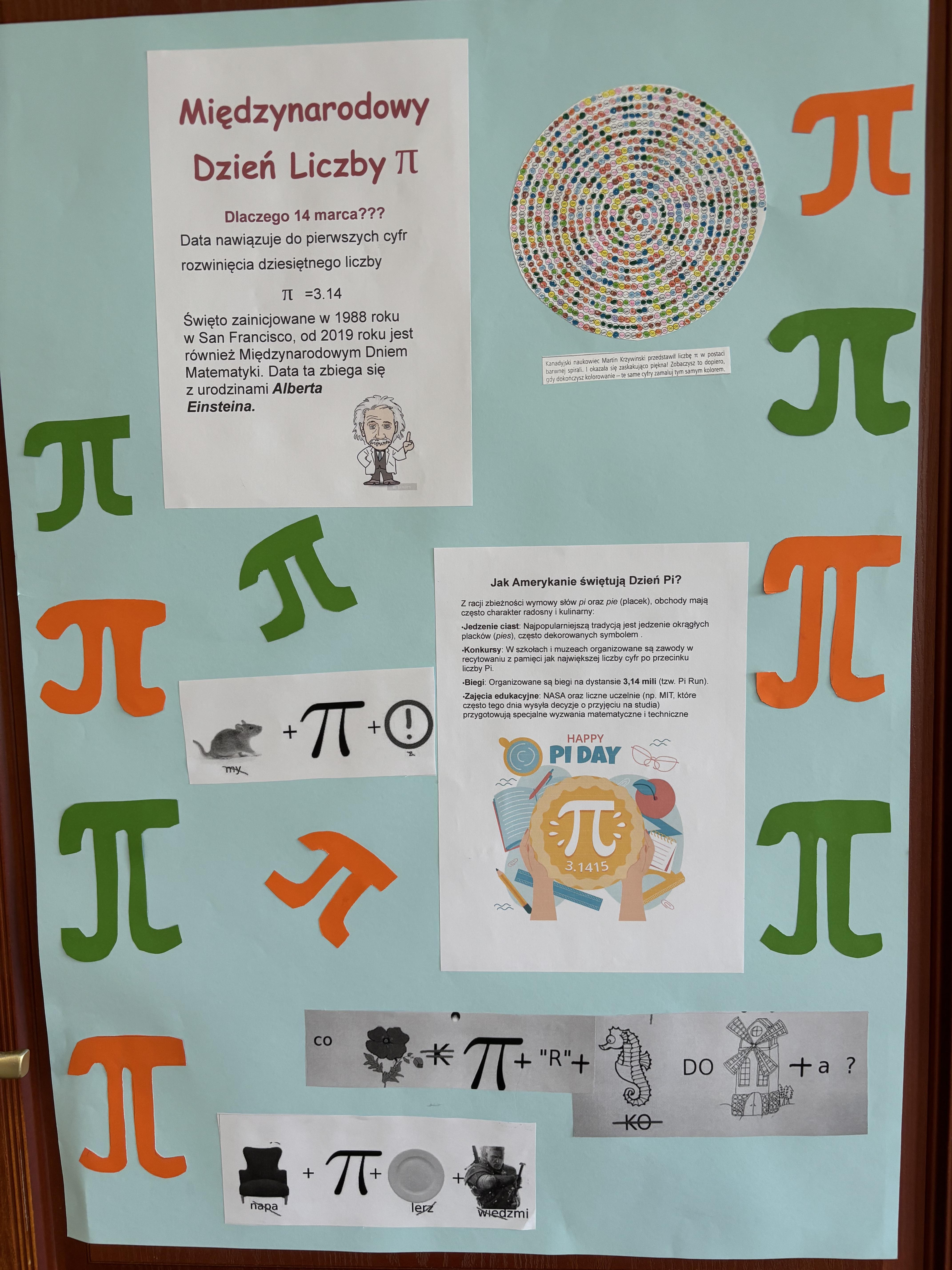 W tym dniu można było obejrzeć wystawę prac konkursowych przedstawiających trójwymiarową liczbę pi. Była okazja do zdobycia plusa za aktywność: rozwiązać działanie by wspólnie tworzyć wartość liczby pi lub odpowiedzieć na pytania związane z liczba pi.