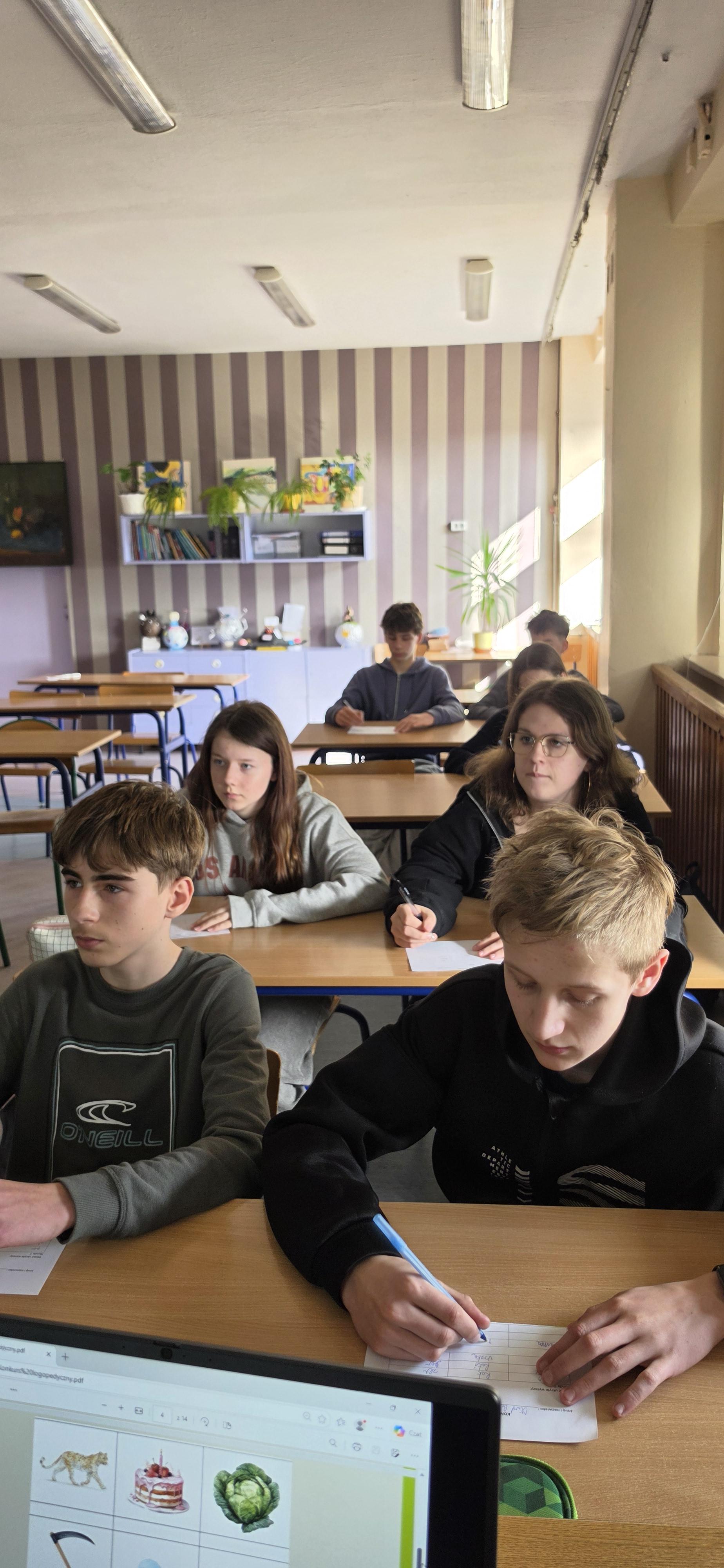 Najwięcej emocji przyniósł jednak konkurs logopedyczny „Mistrz słuchowy”, który cieszył się dużym zainteresowaniem wśród uczniów. Uczestnicy mierzyli się z różnorodnymi zadaniami– rozwiązywali rebusy fonetyczne, pisali dyktando, a także odszukiwali ukryte słowa w innych wyrazach. Wszystkie konkurencje wymagały skupienia i uważnego słuchania, a przy okazji rozwijały koncentrację uwagi słuchowej oraz słuch fonematyczny.