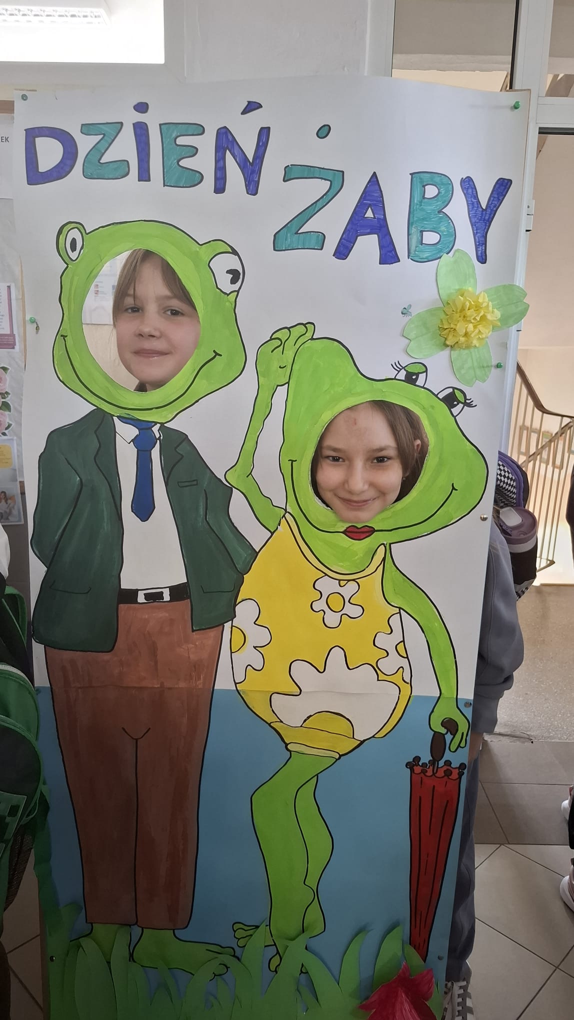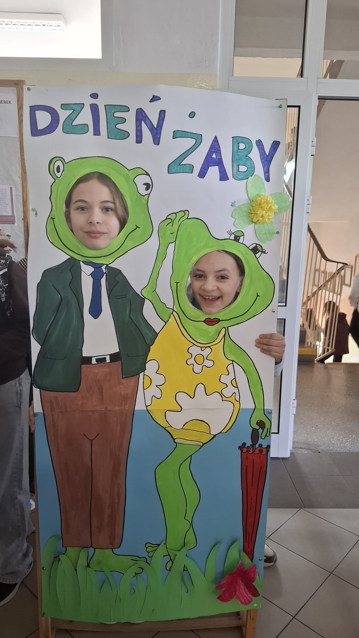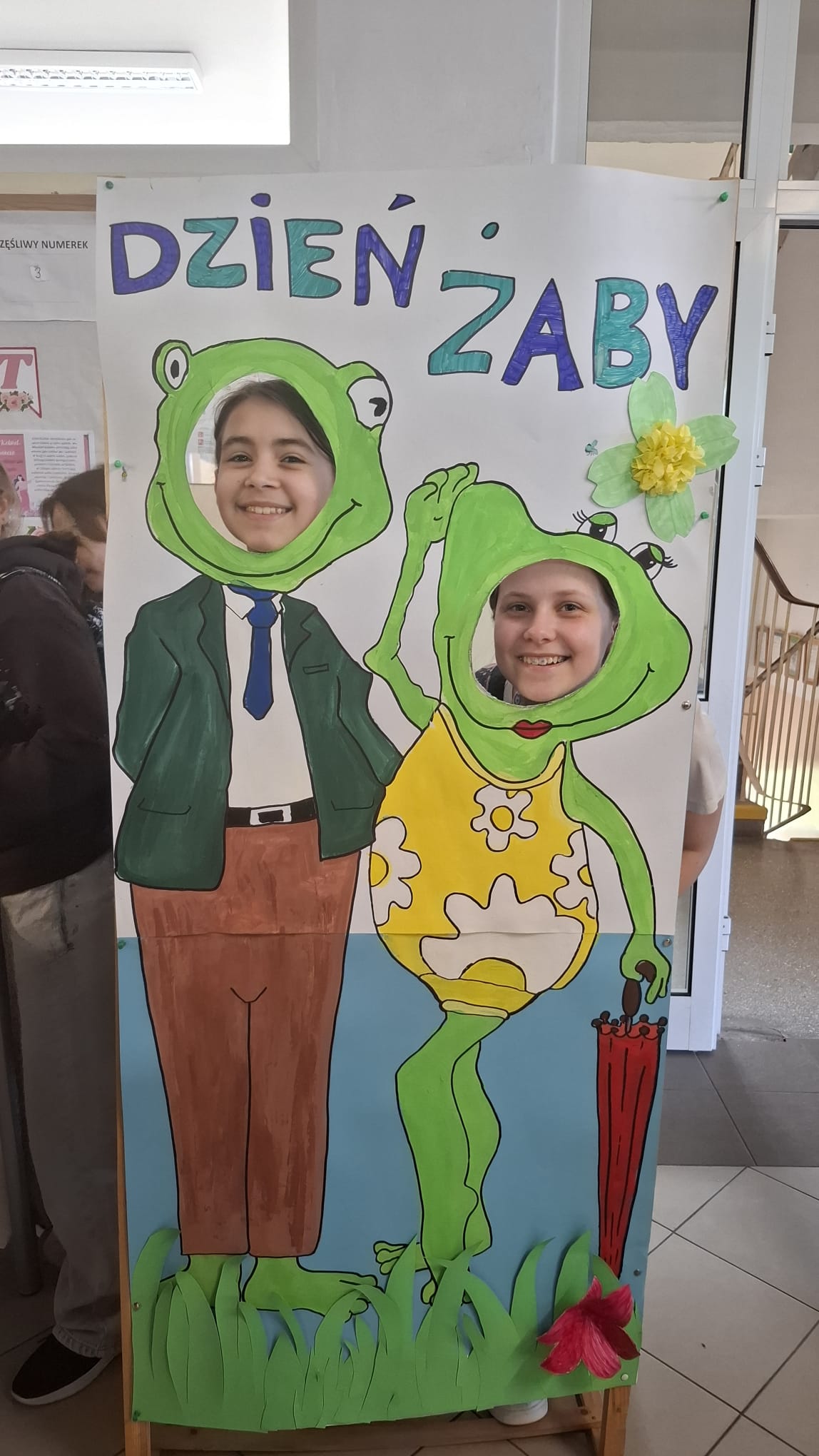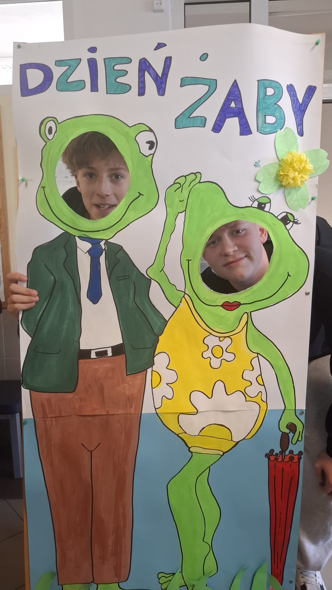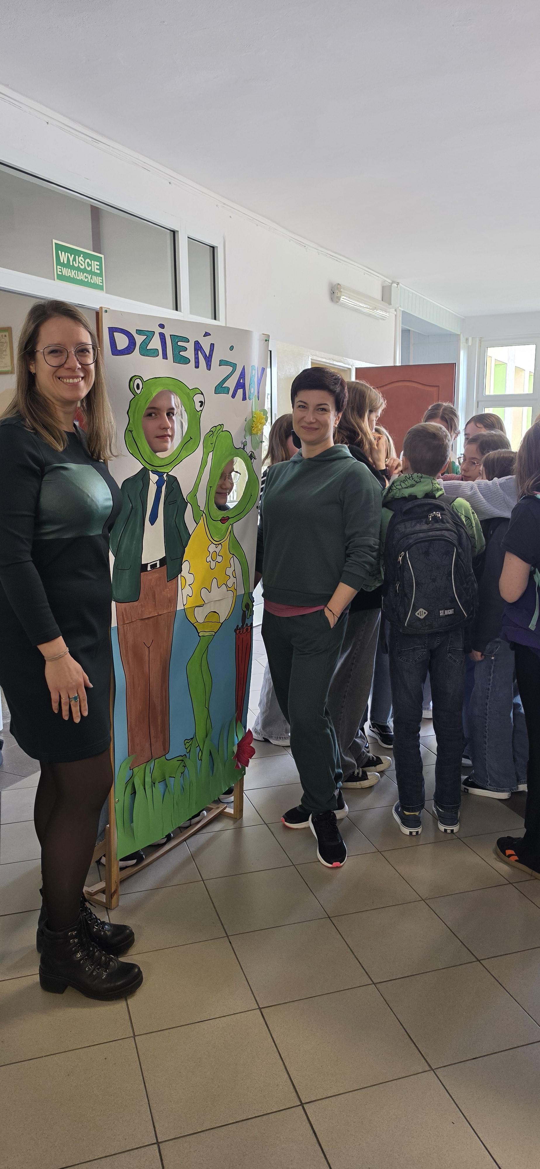 Od rana korytarze tętniły życiem: zielone bluzy, spodnie, a nawet żabie nakrycia głowy. Ogromne oblężenie przeżywała fotobudka – własnoręcznie przygotowana przez uczniów i panią Aleksandrę Jedlinę, nauczycielkę biologii.