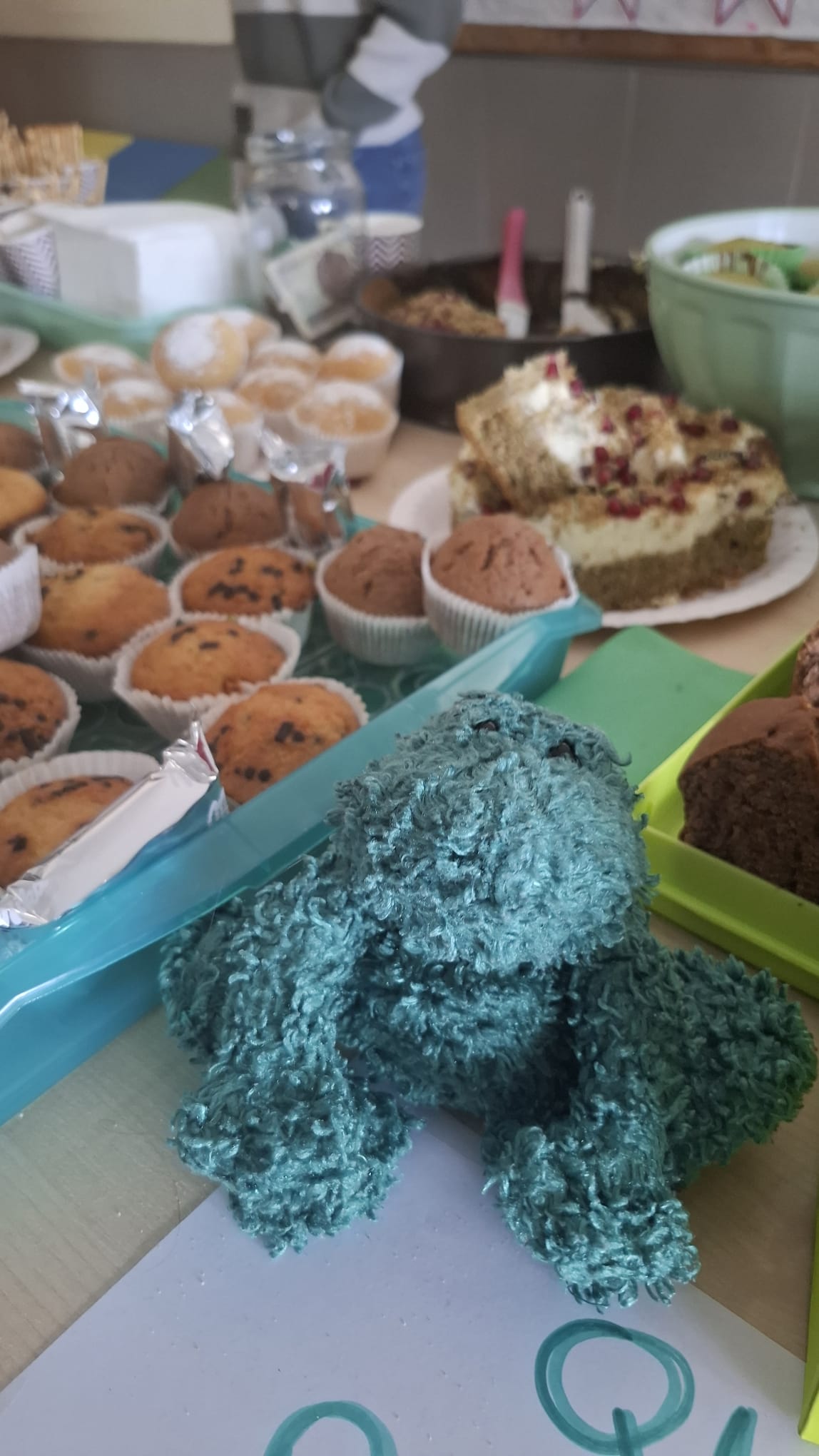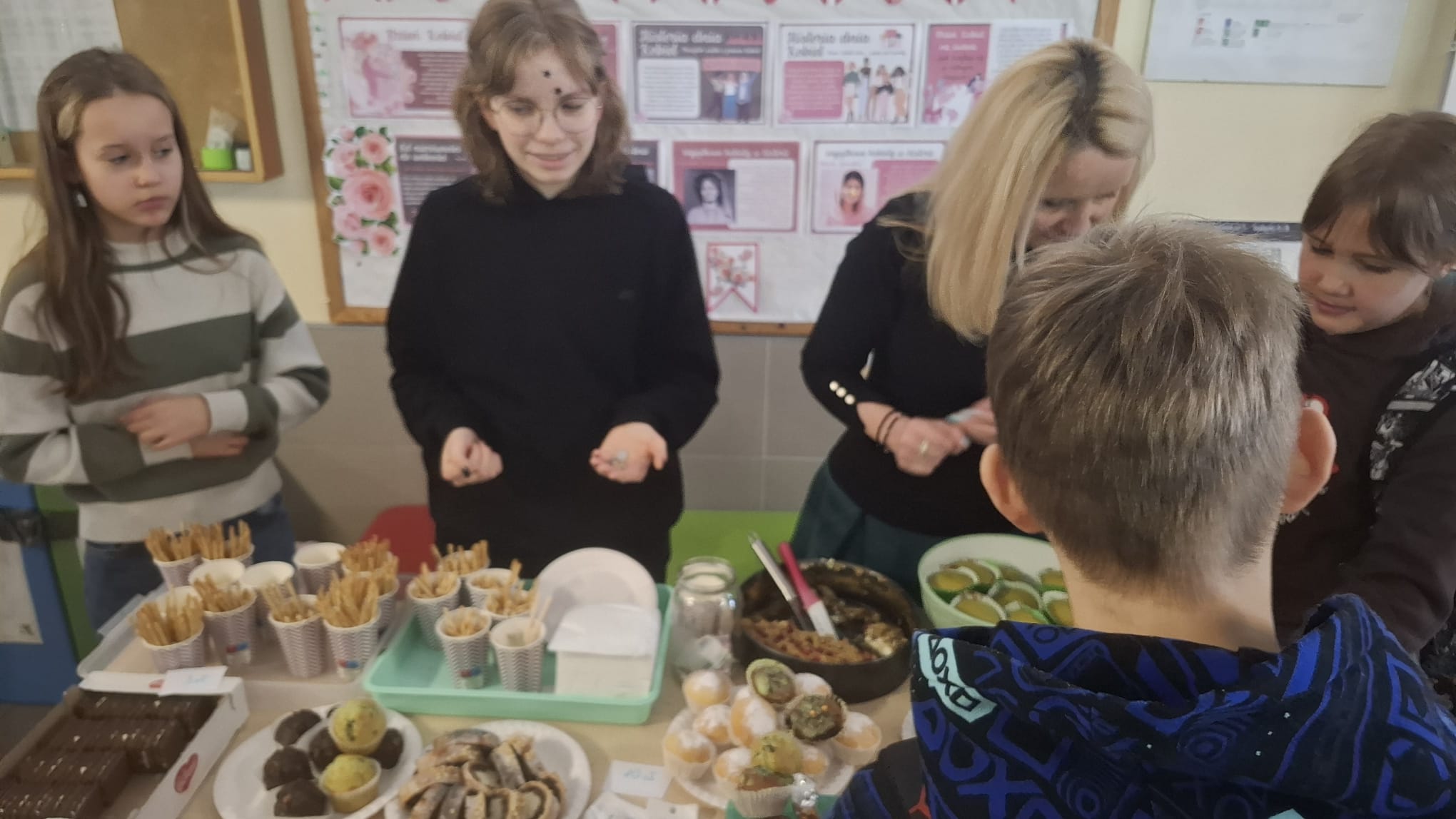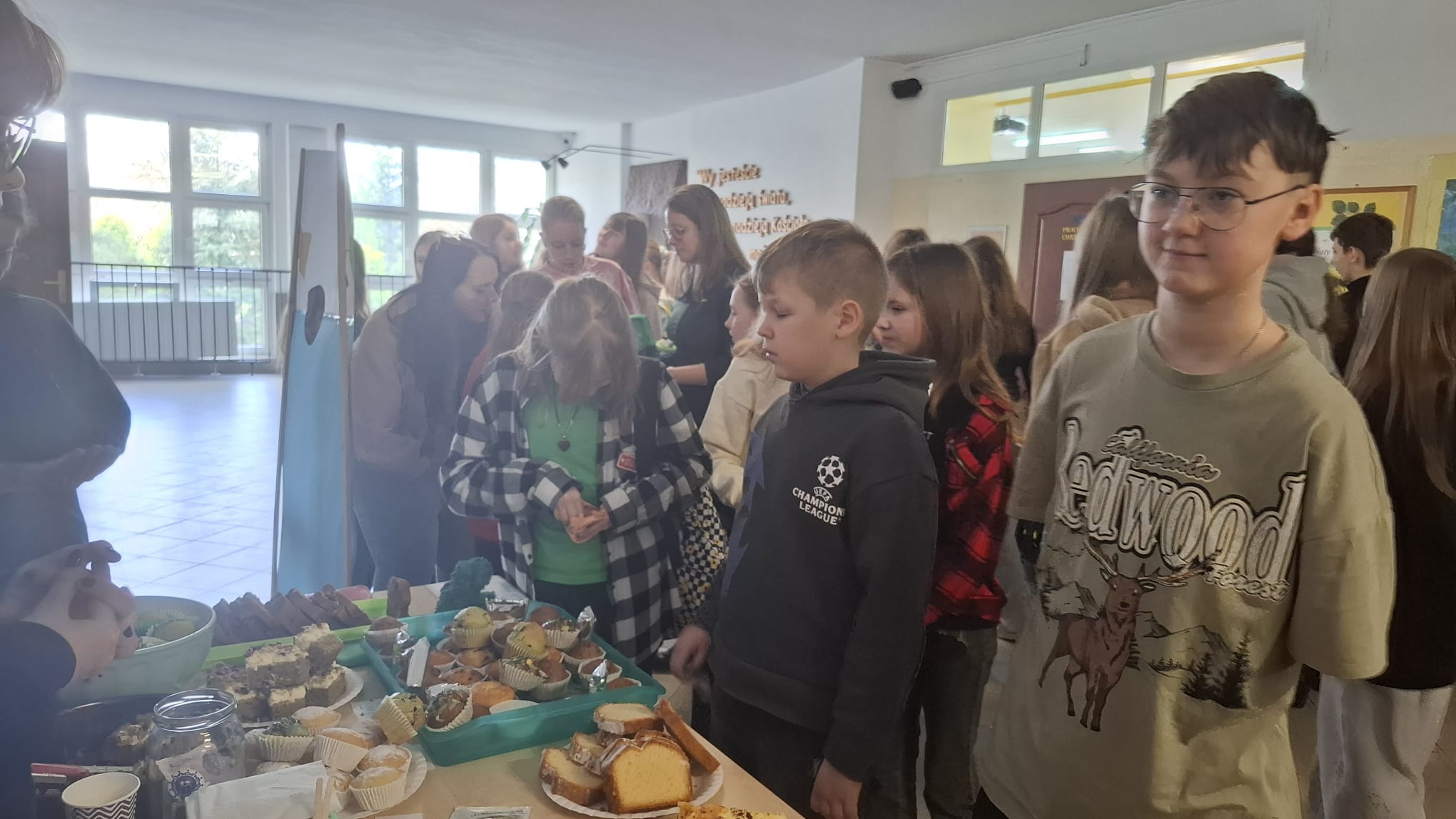 W międzyczasie trudno było nie zboczyć w stronę kiermaszu. Pachniało słodko, wyglądało jeszcze lepiej – zielone ciasta, smakowite babeczki i ręcznie szyte gniotki „żabki” znikały szybciej, niż można powiedzieć „rechot”. Dostarczone kalorie były oczywiście w słusznej sprawie – zebrane środki zostaną przeznaczone na zakup szkolnych patyczaków, które już wkrótce dołączą do naszej biologicznej ekipy.