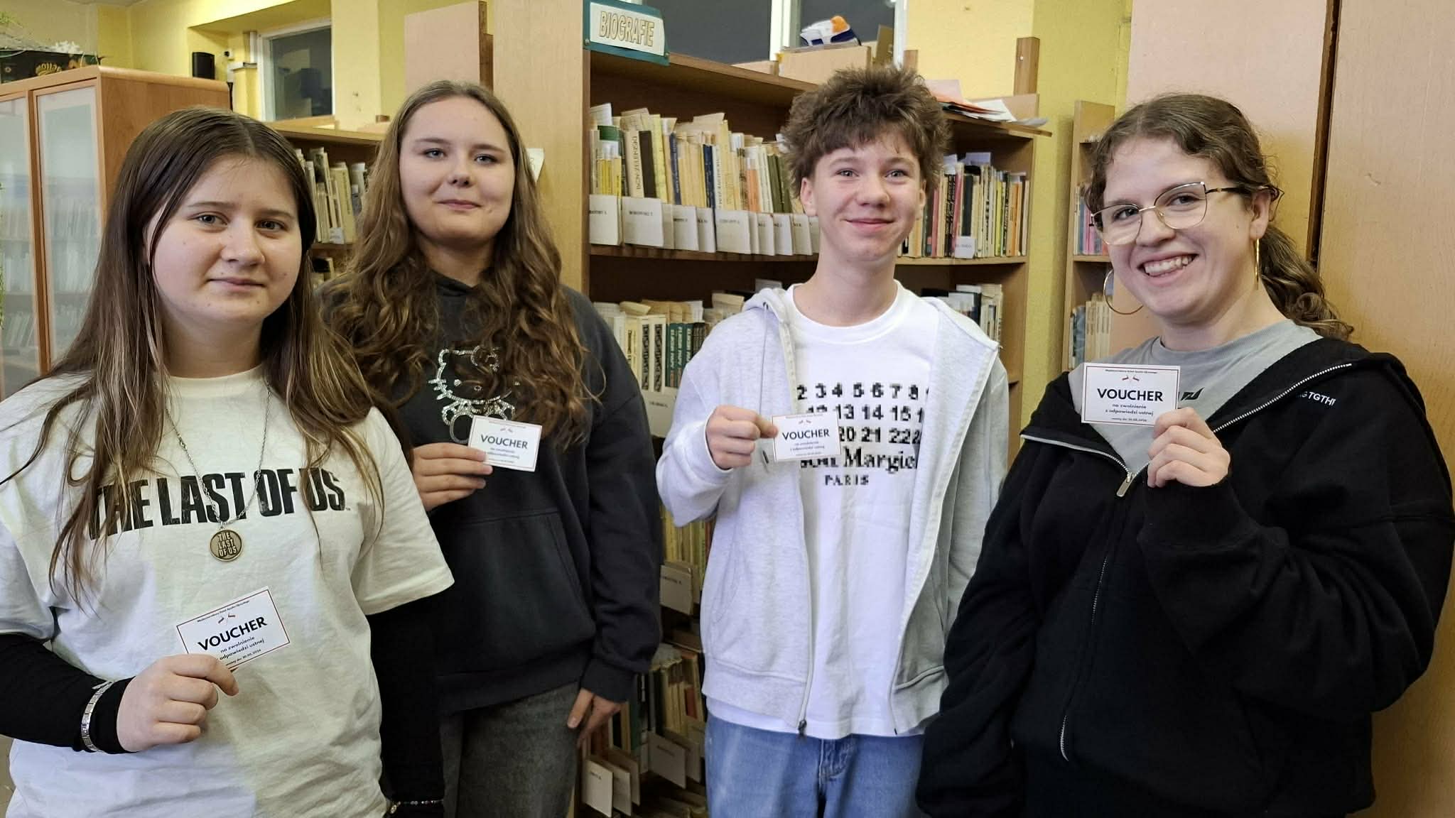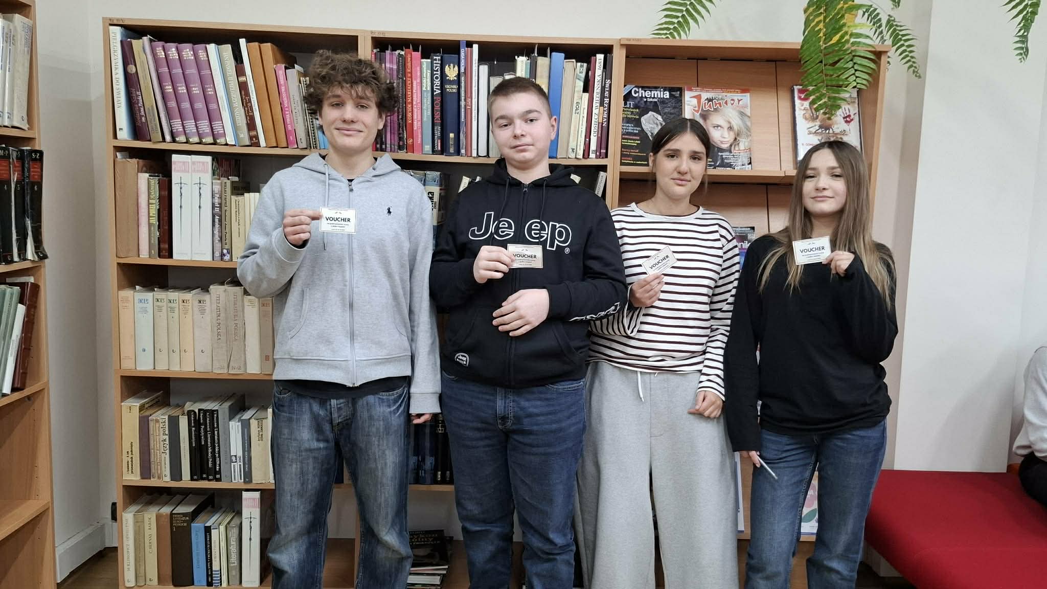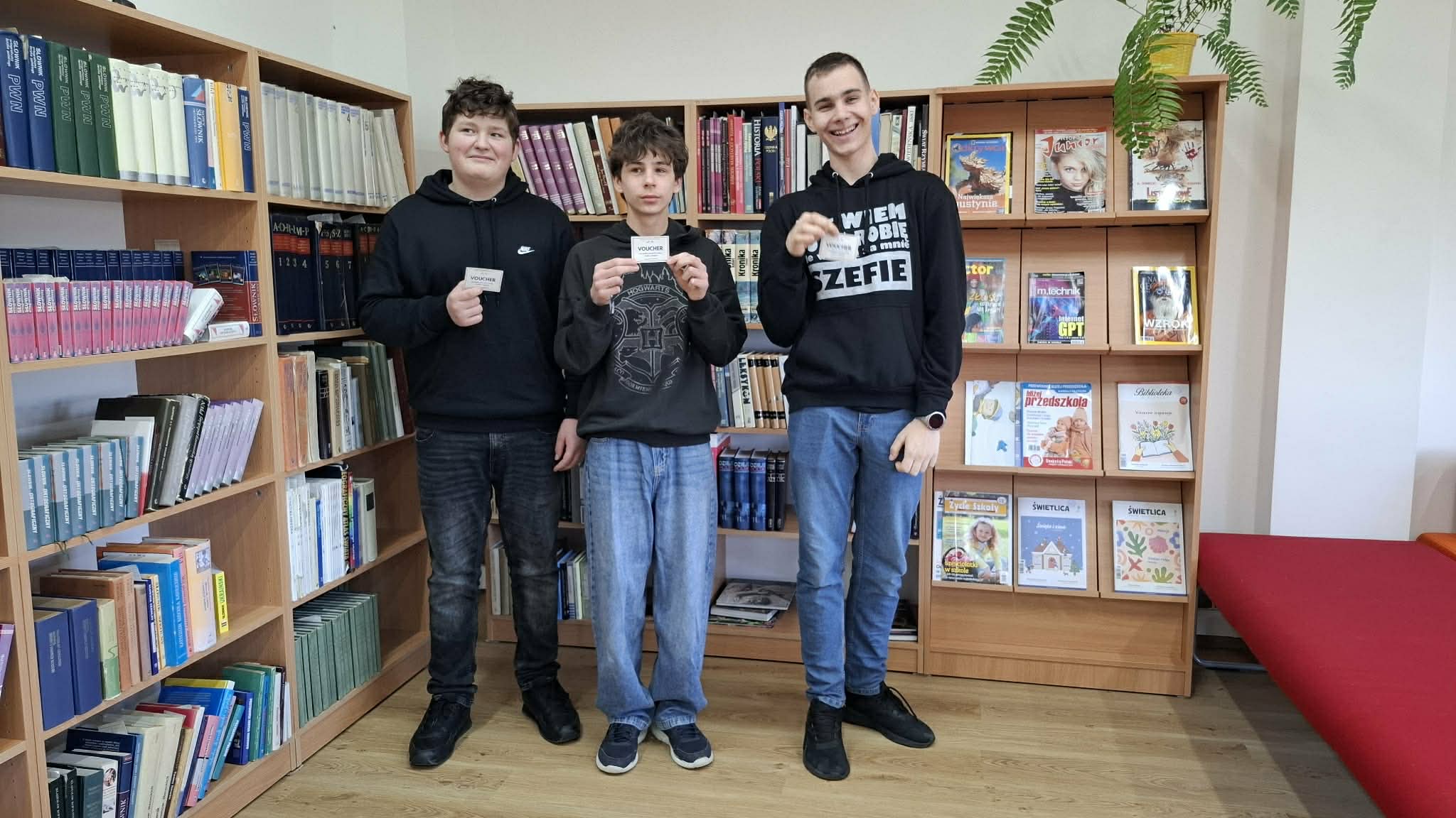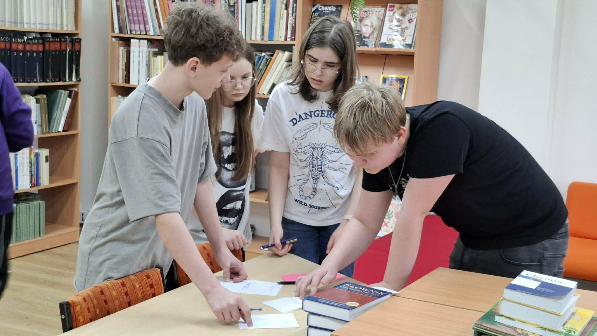 Ponadto Uczniowie klas ósmych i szóstych uczestniczyli w zmaganiach w językowym Escape Roomie. Szóstoklasiści szukali zaginionego Magicznego Słownika Języka Polskiego, ósmoklasiści zaś magicznego arkusza egzaminacyjnego. Magicznego - ?bowiem zawierały one wskazówki ?️jak odnaleźć nagrodę. Wcześniej jednak należało znaleźć 8 ukrytych w bibliotece zadań i rozszyfrować KOD. Trzy drużyny, które wykonały zadania jako pierwsze mogły liczyć na nagrodę. A że Chochliki ?to złośliwe stworzenia, więc trzeba było nieco pogłówkować. Uczniowie znakomicie się bawili, ale też wykazali się wiedzą językową.
