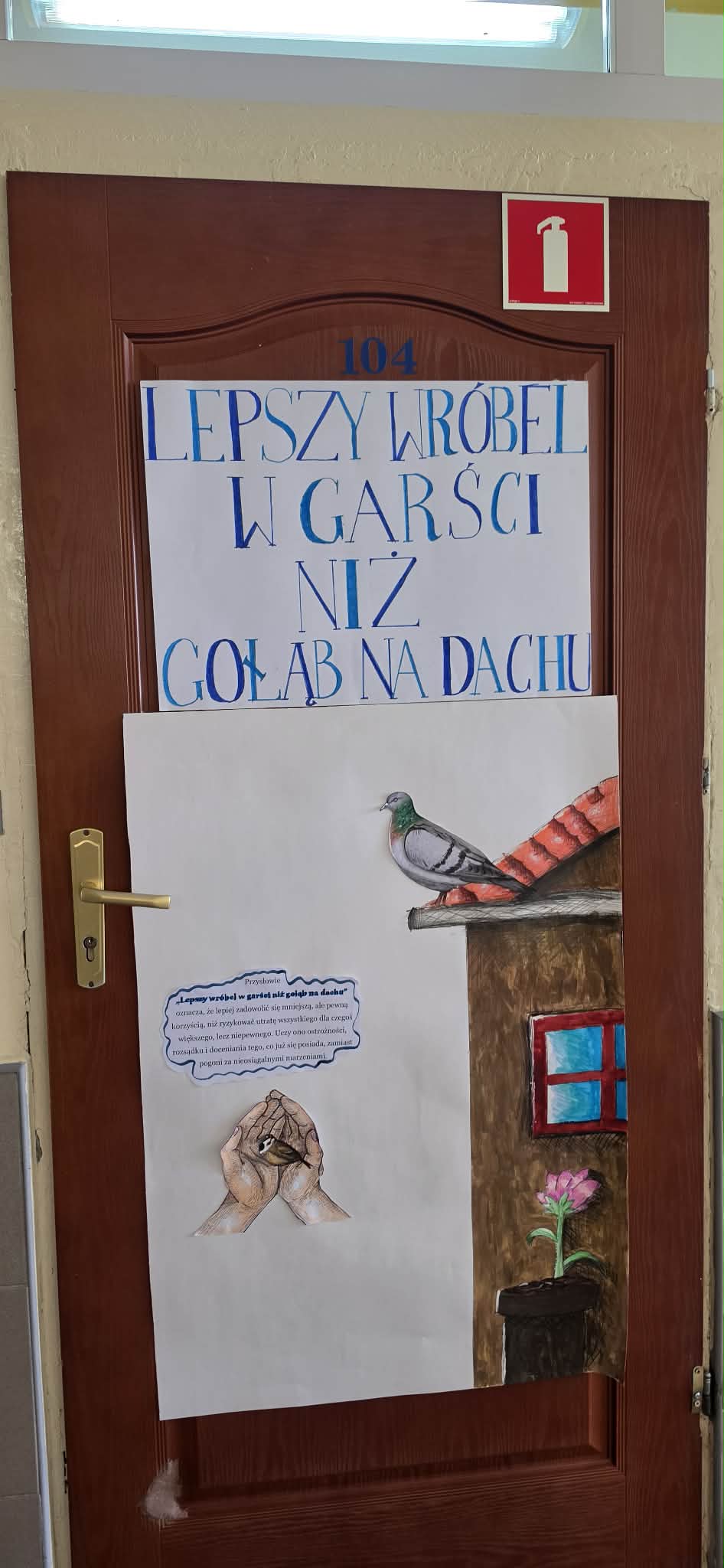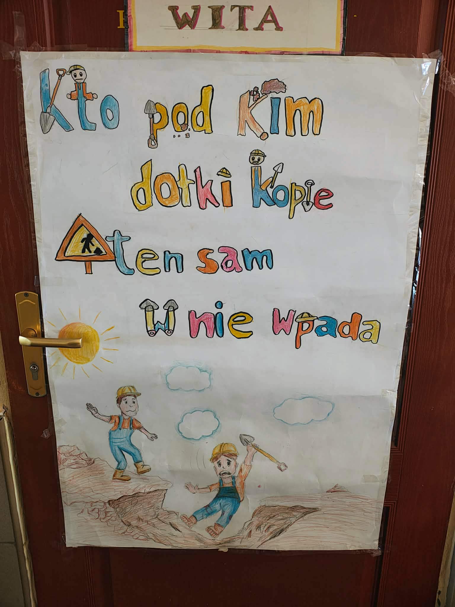 W obchody włączyły się również wszystkie klasy, dekorując drzwi swoich pracowni. Motywem przewodnim stały się polskie przysłowia – niektóre dobrze znane, inne już nieco zapomniane, lecz wciąż pełne życiowej mądrości. Kolorowe plakaty, instalacje i pomysłowe ilustracje przypominały, że przysłowia są ważną częścią naszej kultury i tradycji. Wszystkie były bardzo ciekawe, jednak wyróżniliśmy trzy klasy, które otrzymają nagrodę: „Bon na przełożenie kartkówki”.