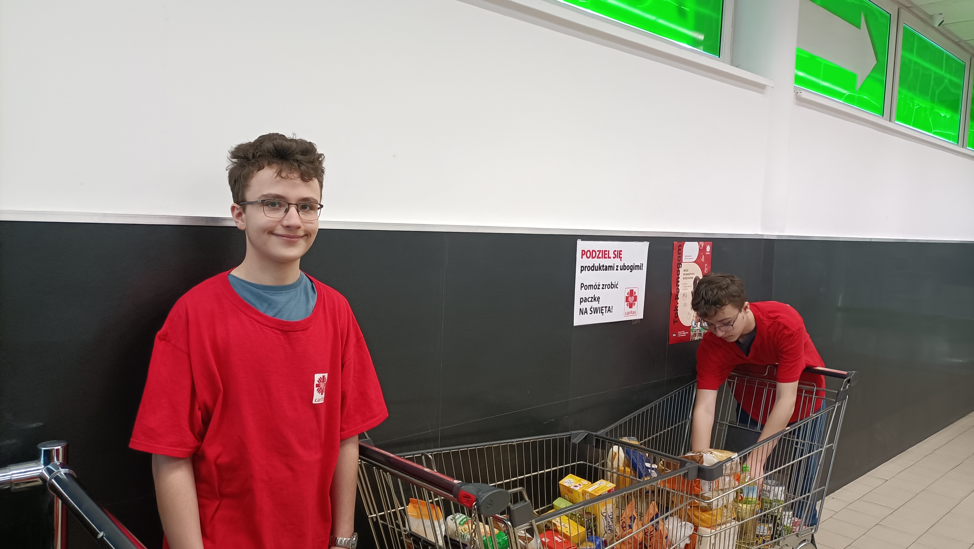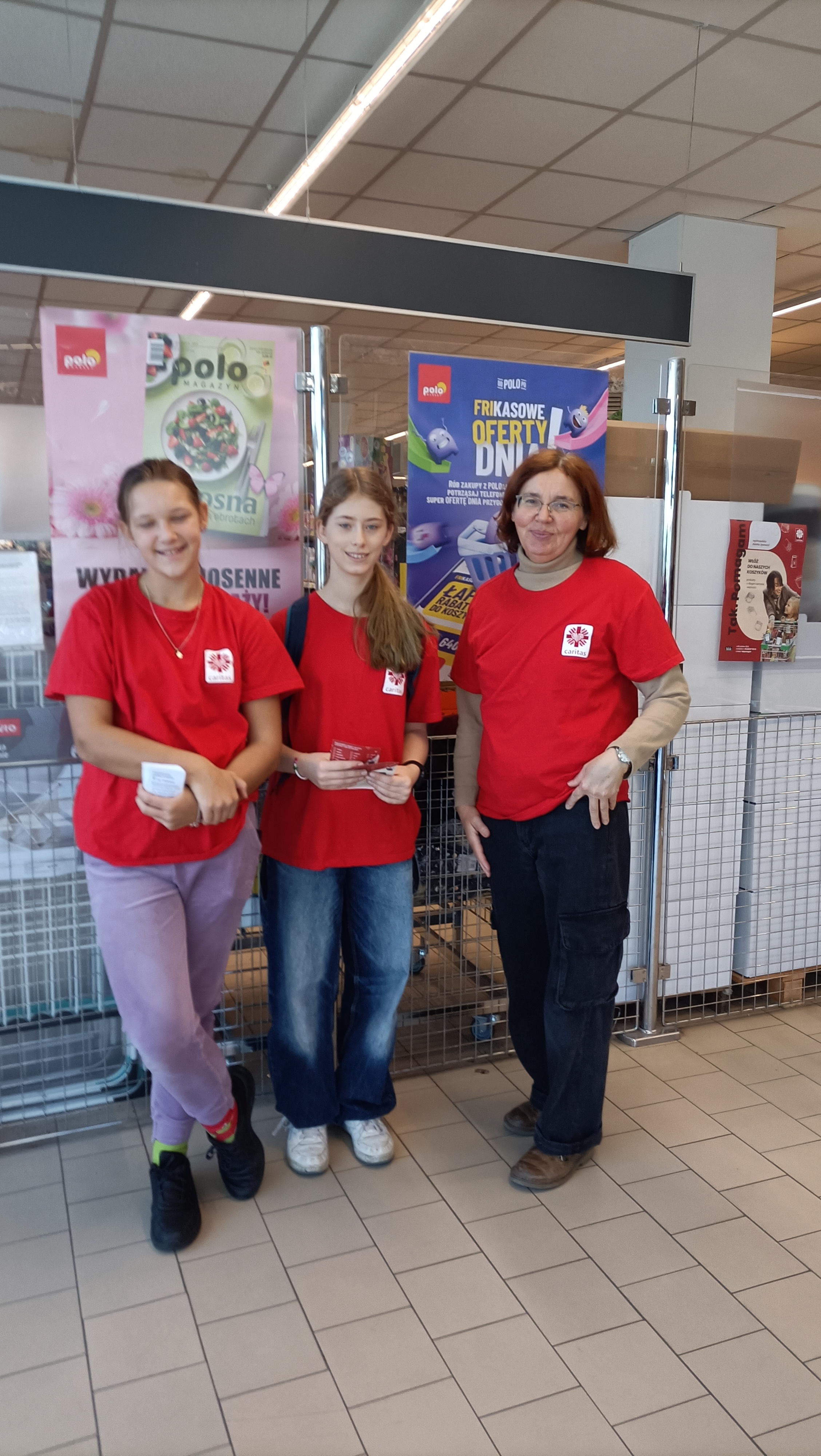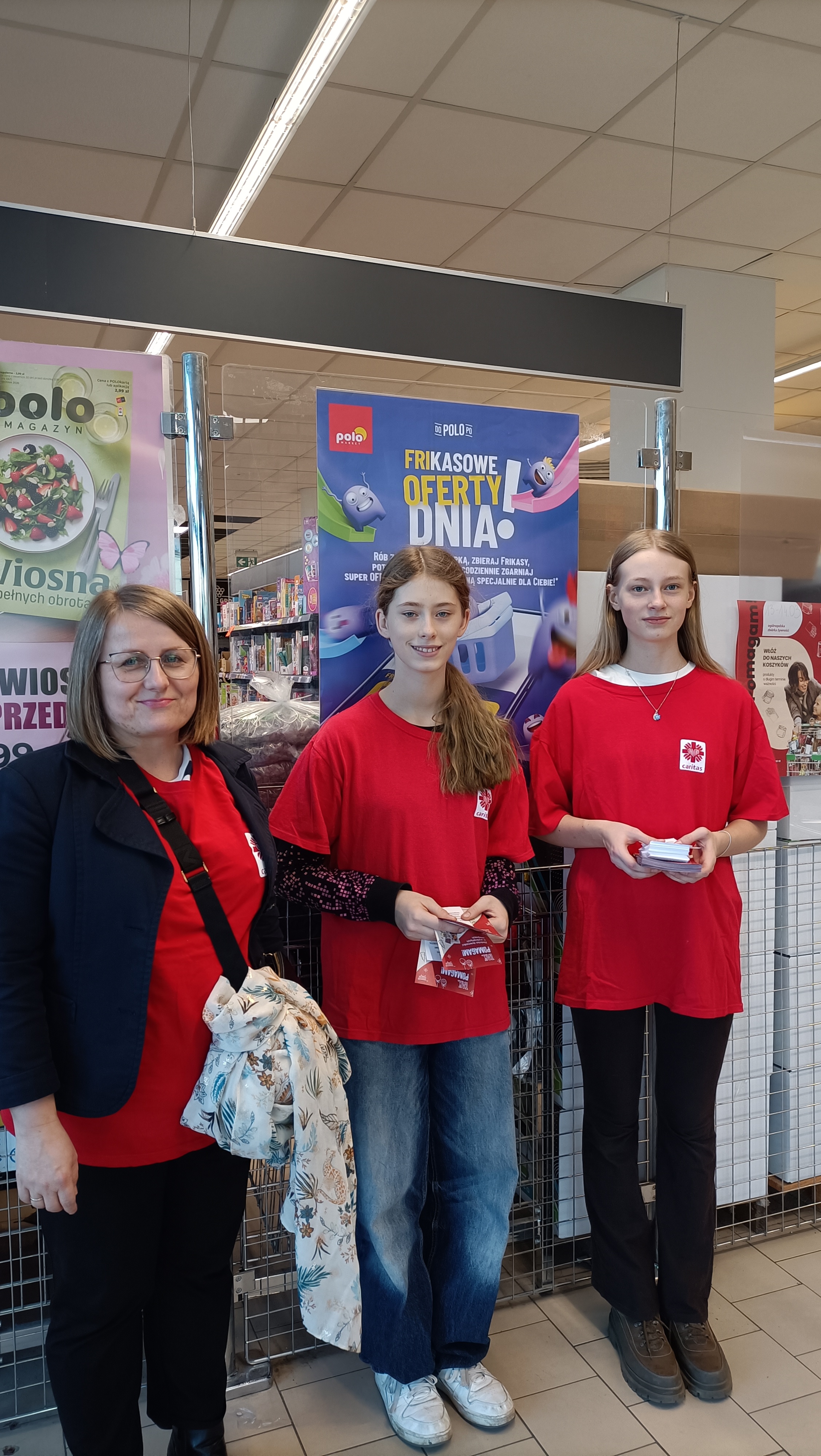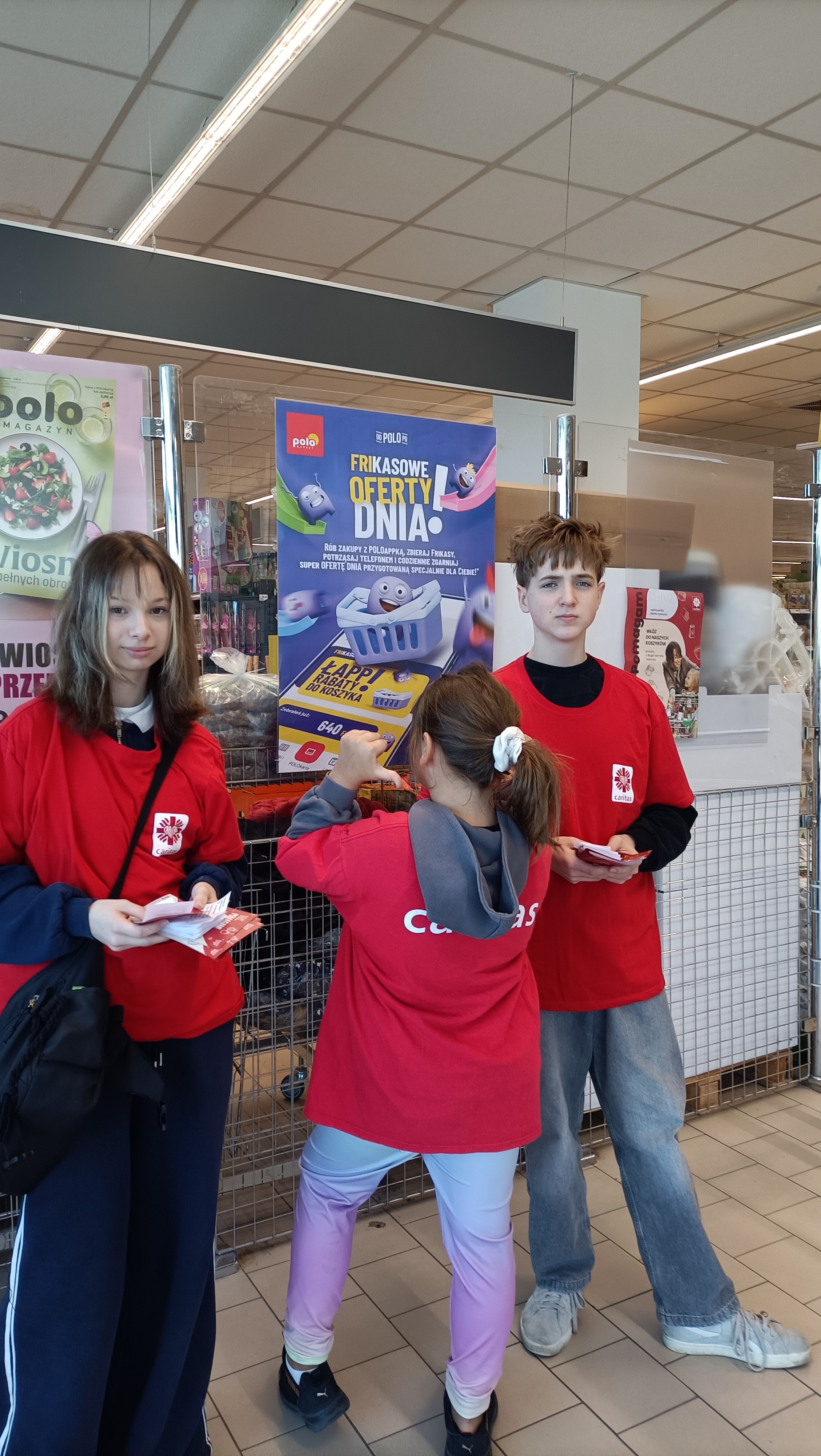 Wolontariusze z klas 3-8 zachęcali klientów Polo Marketu przy ulicy Piłsudskiego do zakupu długoterminowej żywności, która przed świętami Wielkanocnymi trafi do domów osób potrzebujących wsparcia.