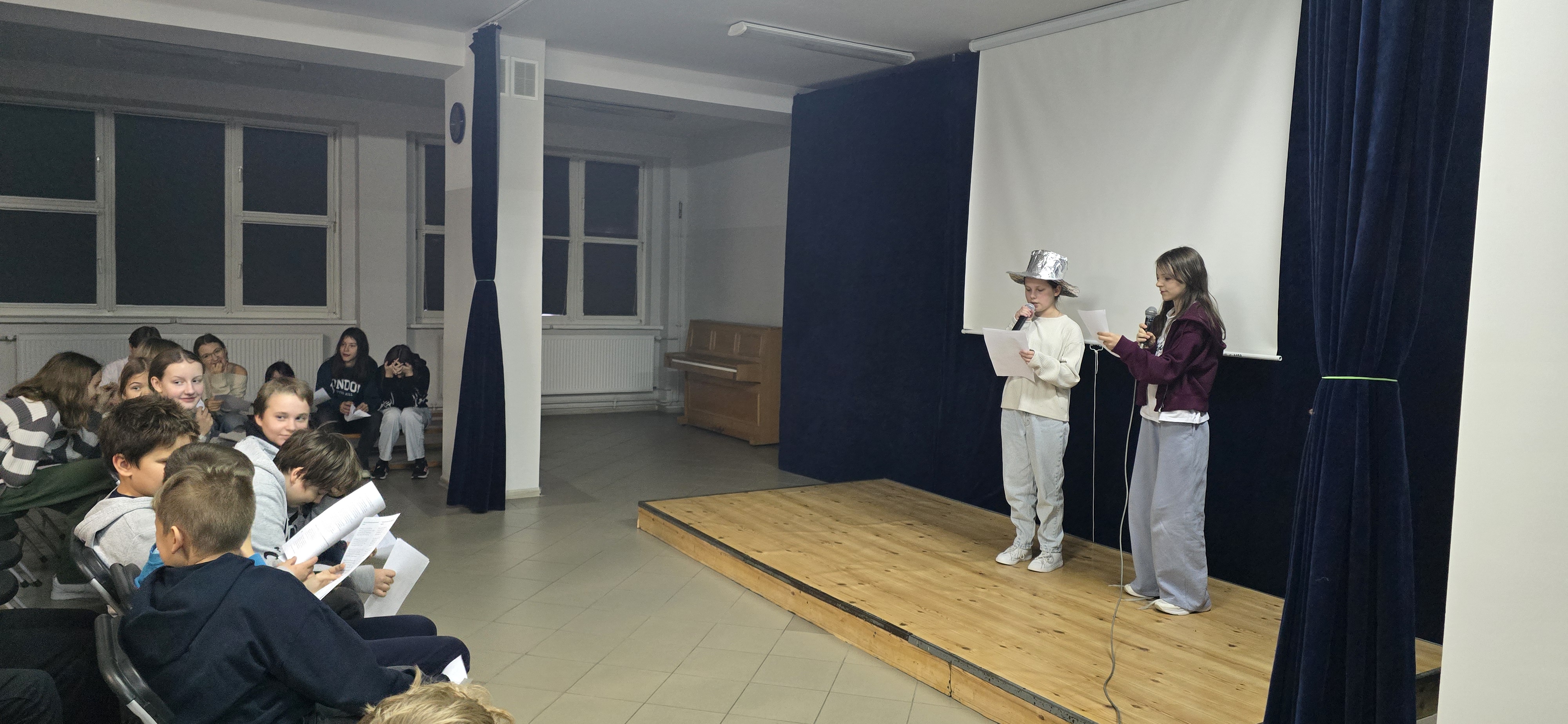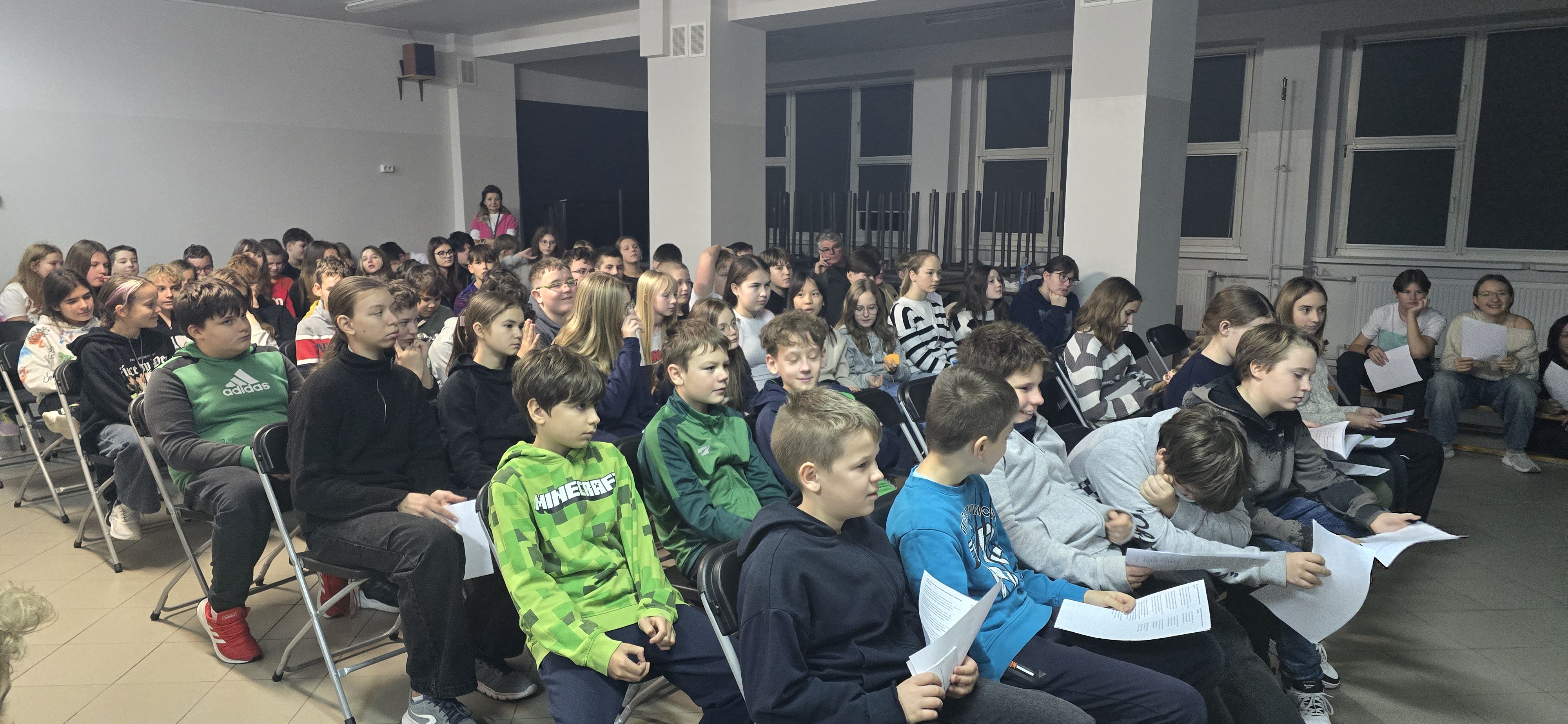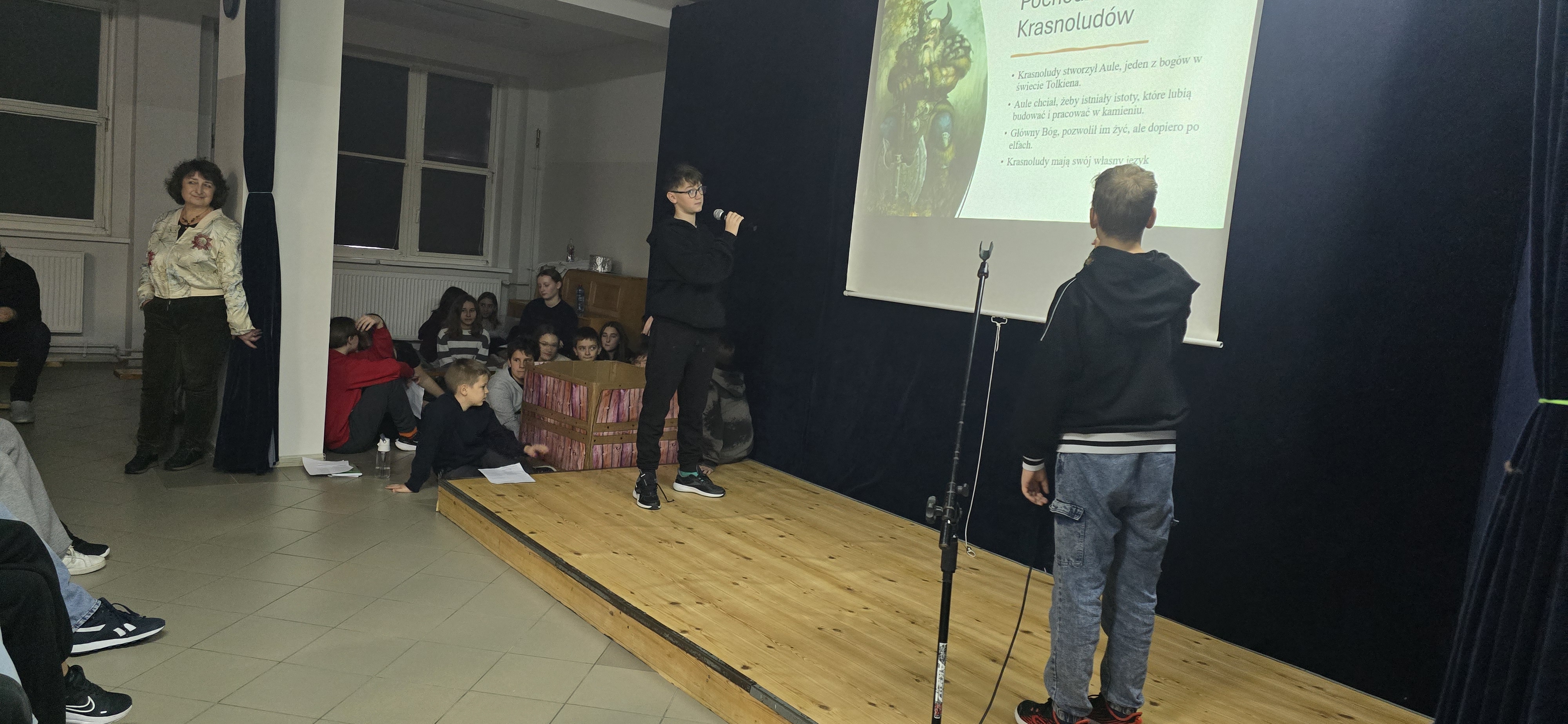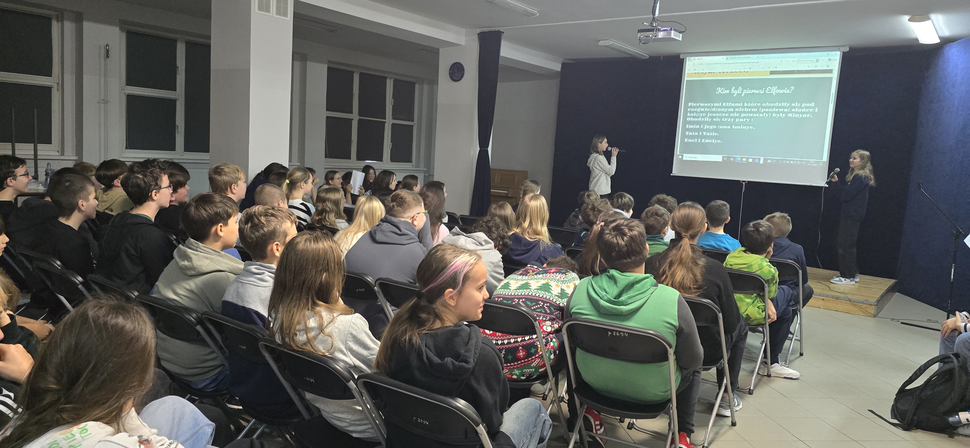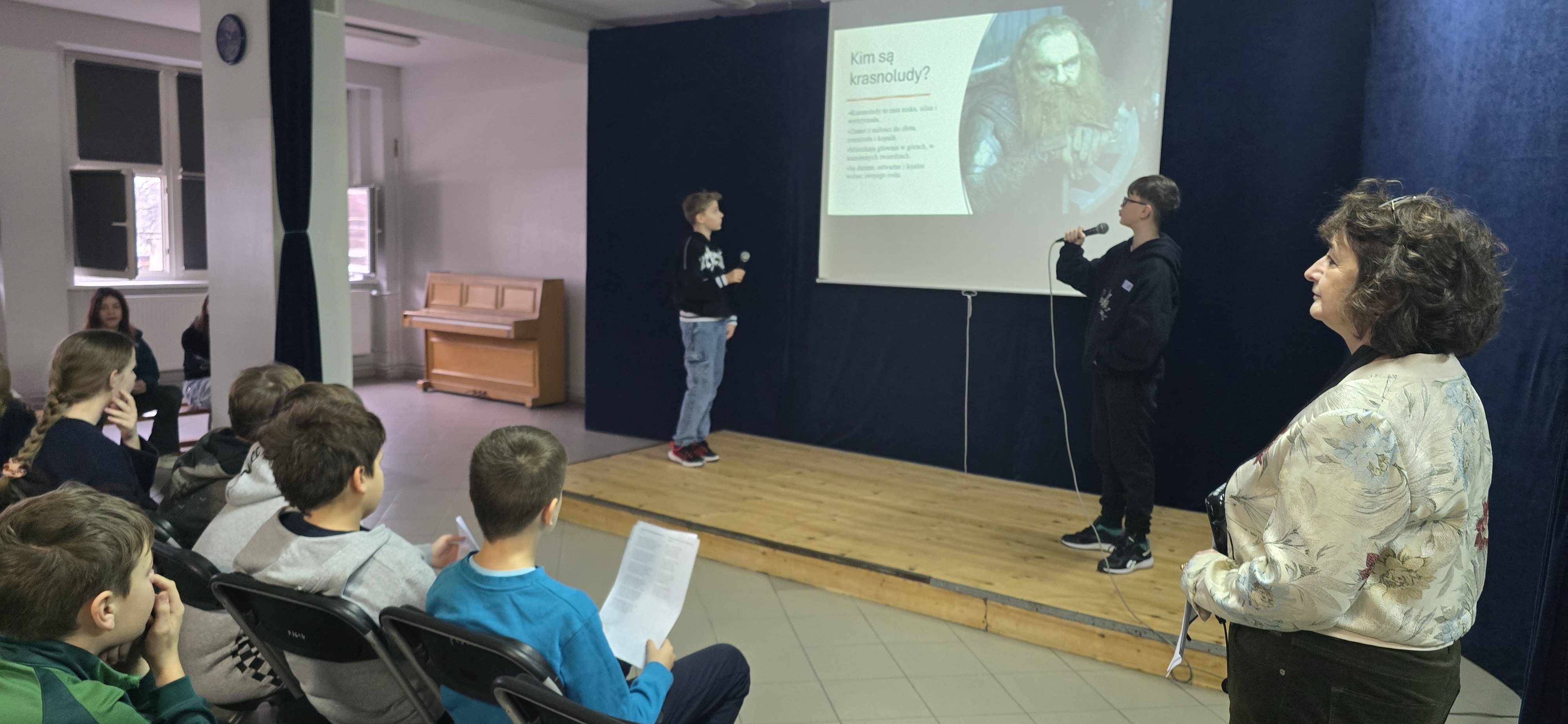 We wtorek 18 listopada 2025 roku w klasie 6d miała miejsce lekcja otwrta poświęcona tekstom wierszowanym w lekturze ‘Hobbit”. Uczniowie poznali sposoby rytmizacji tekstu i rolę piosenek w utworze literackim. Najwięcej radości sprawiła dzieciom możliwość wykonania wybranych utworów muzycznie – uczniowie wykorzystali instrumenty wykonane przez starszych kolegów - grzechotki, flety, talerze. Ci, którzy nie otrzymali instrumentu, mogli klaskać i wystukiwać rytm konkretnego utworu. Cała klasa miała możliwość zaśpiewać pieśn krasnoludów i pieśń elfów. Prawdziwą zabawą było tak zwane zakręcenie beczki przy wypowiadaniu rymowanki . Uczestnicy zajęć poznali, cio to jest kołysanka, melika, obejrzeli krótkie filmiki , które pozwoliły zobaczyć wykonanie piosenek w filmie. Lekcja sprawiła wiele radości uczniom i zaproszonym gościom, a o to chodzi, by uczyć przez zabawę. Zajęcia prowadziły: Dorota Gronkowska i Ewa Wojdyła – Szawel.