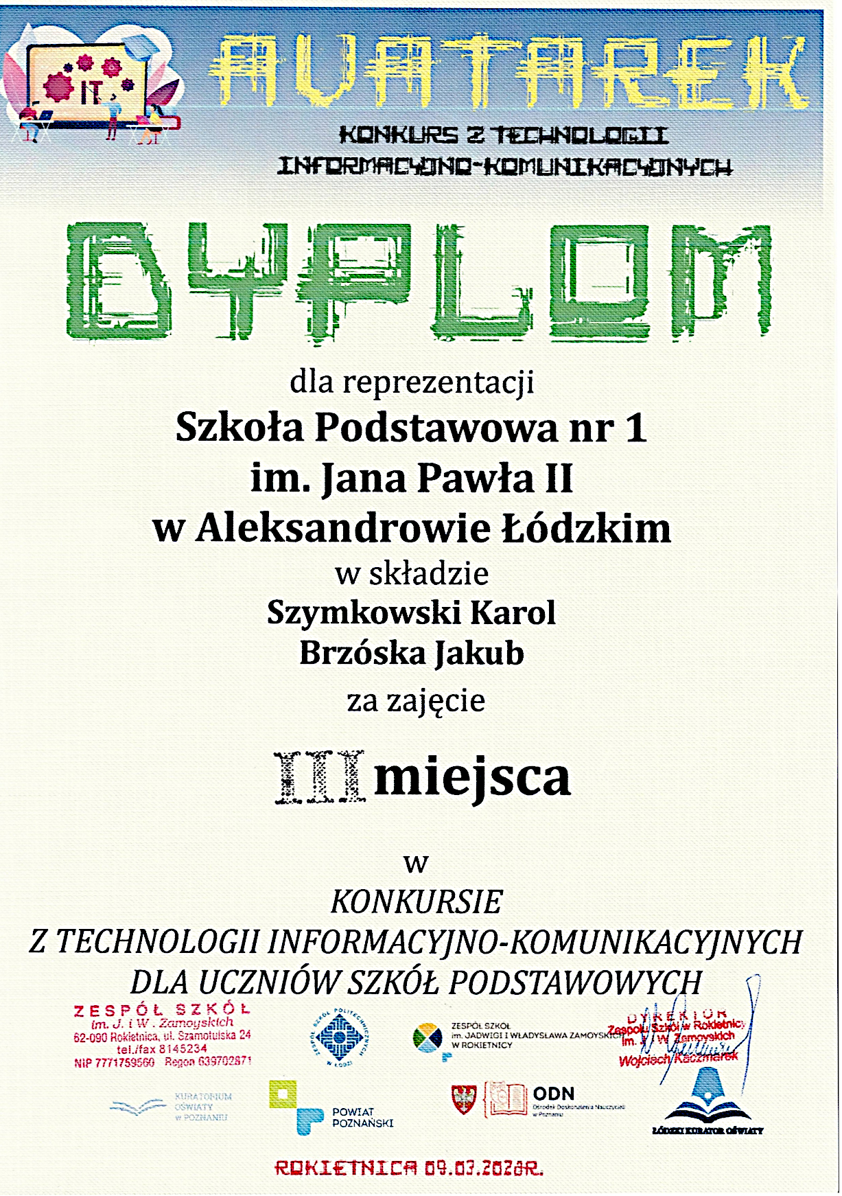 9 marca 2026 roku w Zespole Szkół im. Jadwigi i Władysława Zamoyskich w Rokietnicy odbył się ogólnopolski finał konkursu z technologii informatyczno – komunikacyjnych Avatarek 2026.