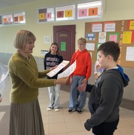 Mistrzami zostali: Jerzy Goszczyński, Jan Jędrasiak, Zlata Kachubei, Kacper Kawalec, Maks Lange, Arkadiusz Limiera, Maja Stasiak, Wojciech Szablewski oraz Vincent Wewer. Wymienieni uczniowie otrzymali dyplomy i nagrody rzeczowe wręczone przez Panią Dyrektor.