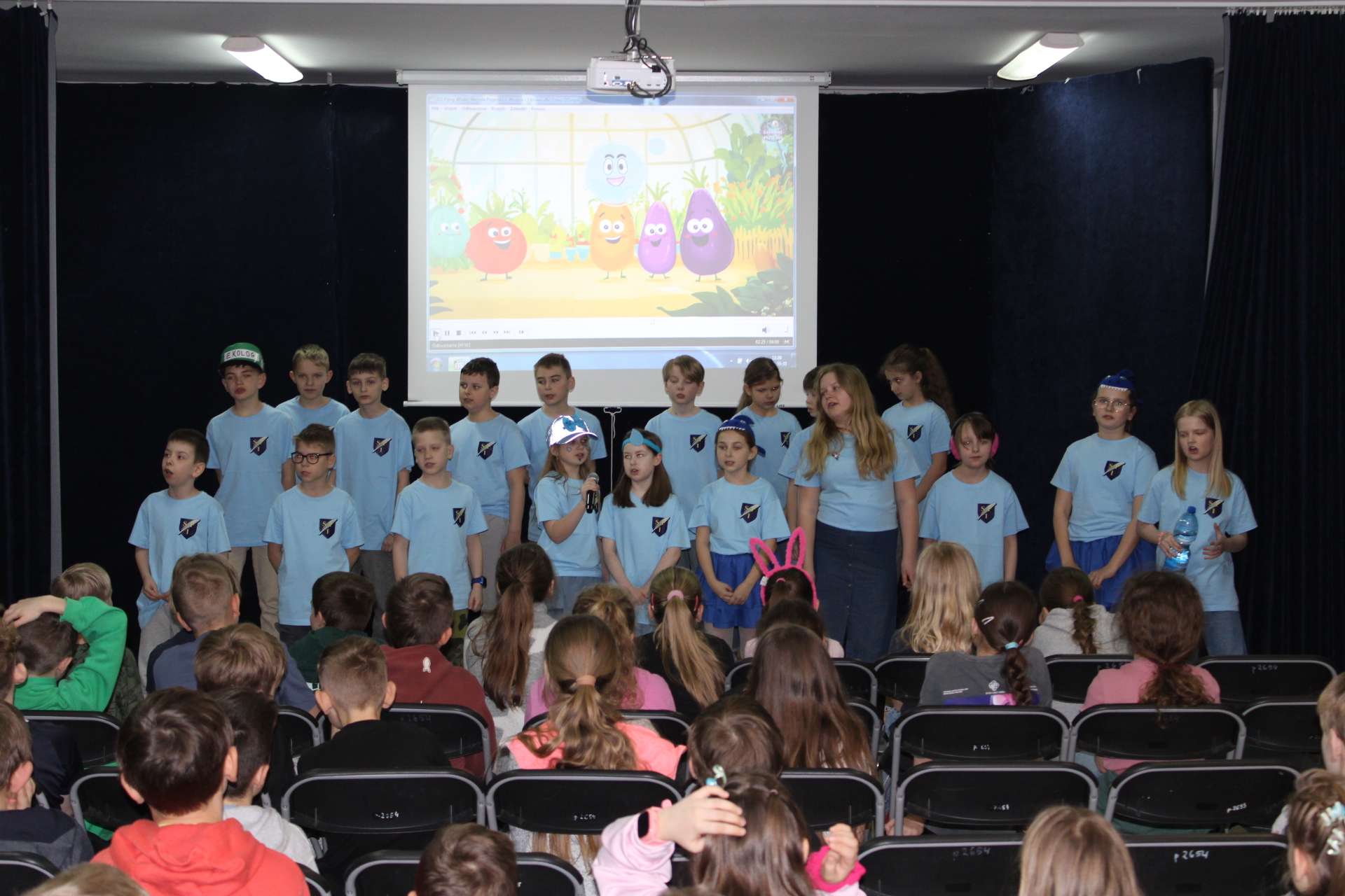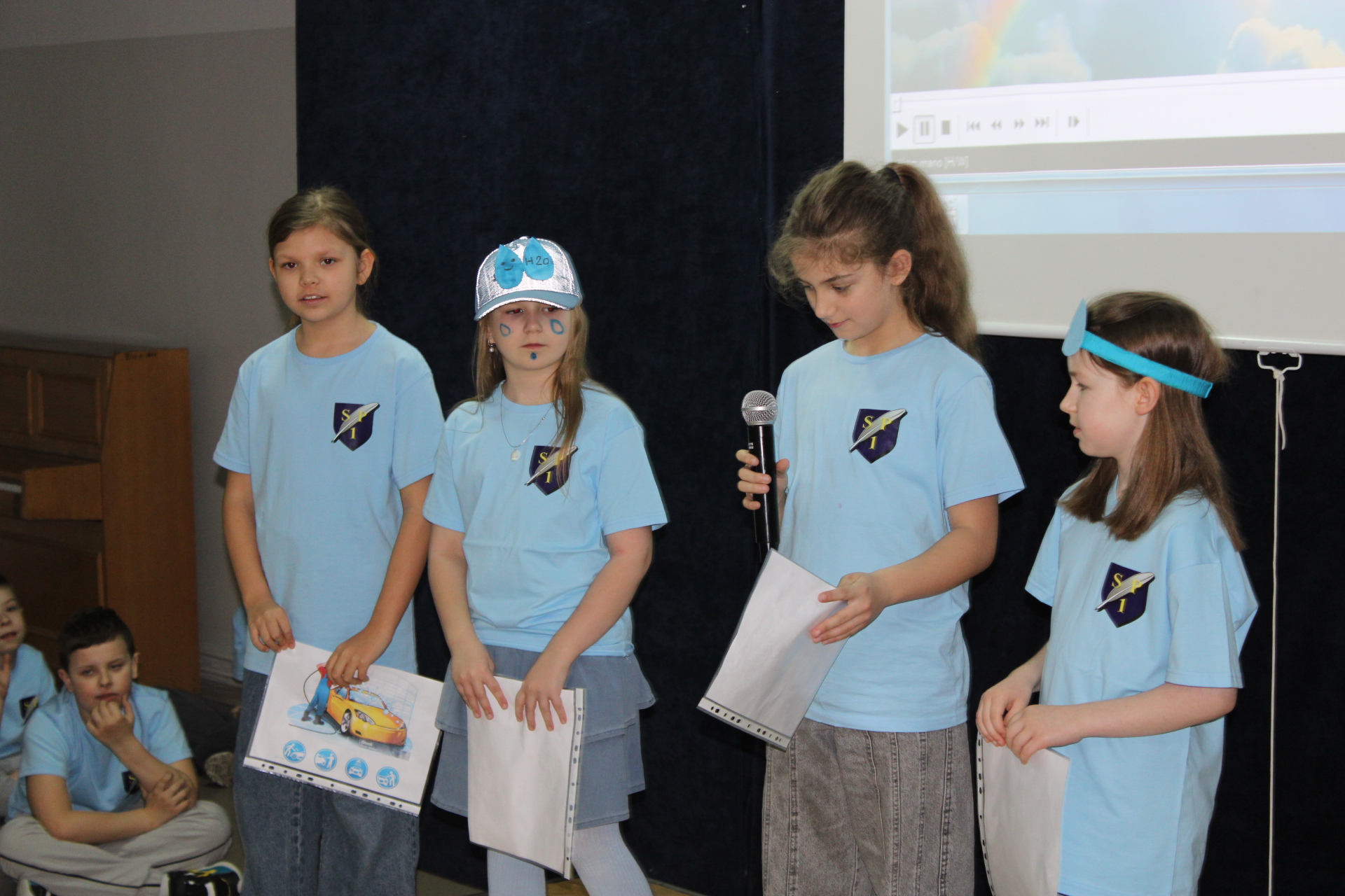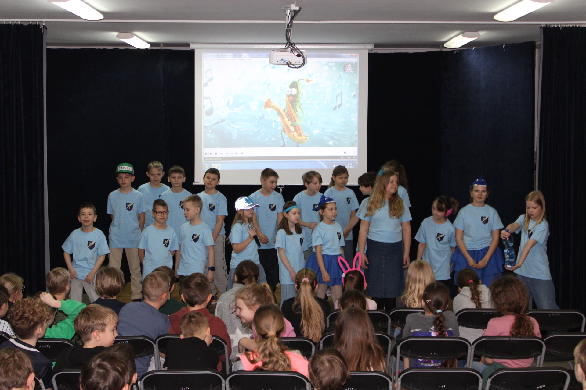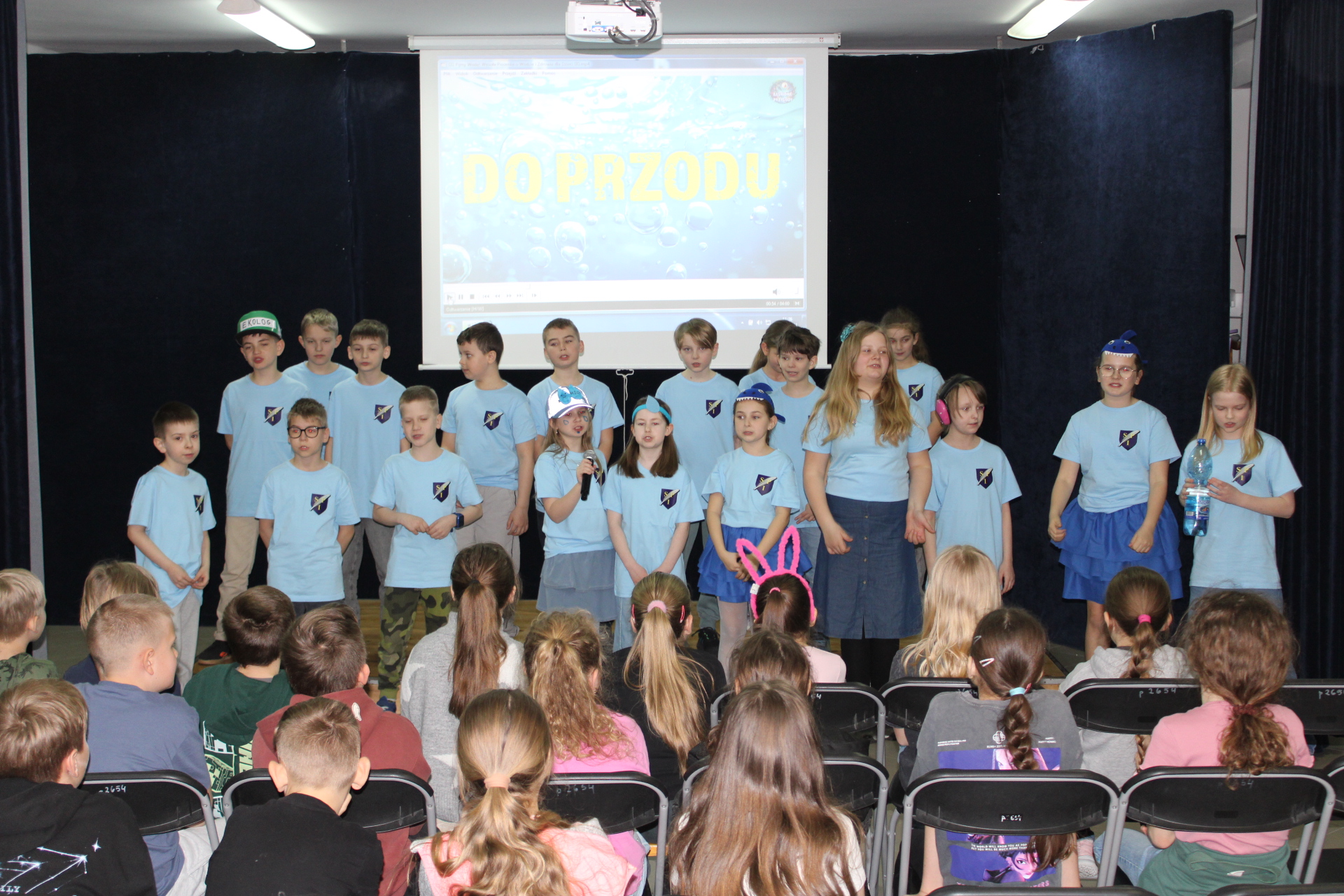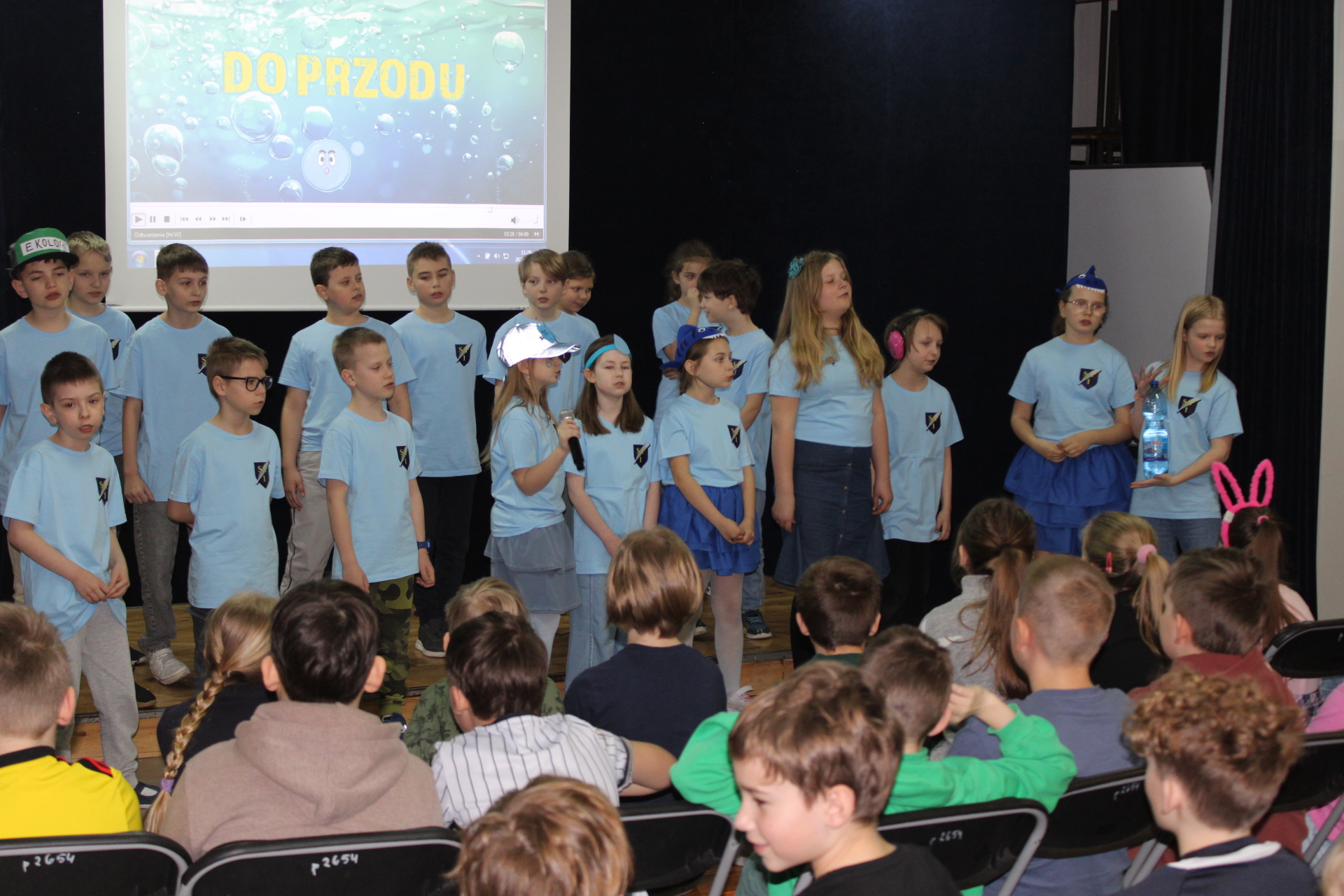 31 marca 2026 r. uczniowie klas młodszych obejrzeli przedstawienie pt "WODA" w wykonaniu dzieci z klasy III a. Wykonawcy przypomnieli, jakie znaczenie ma woda w naszym życiu. Poprzez swój występ dostarczyli widzom wielu niezapomnianych wrażeń. Wszyscy włączyli się do śpiewania piosenki pt." Pijmy wodę". W trakcie przedstawienia panowała cisza i duże zainteresowanie wśród widzów. Stroje wykonawców w pełni pasowały do treści przedstawienia. Trzecioklasisci zaprezentowali się w niebieskich podkoszulkach. Dziękujemy wszystkim za ogromne brawa i ciepłe słowa. Pijmy wodę, zgodnie ze słowami naszej piosenki.