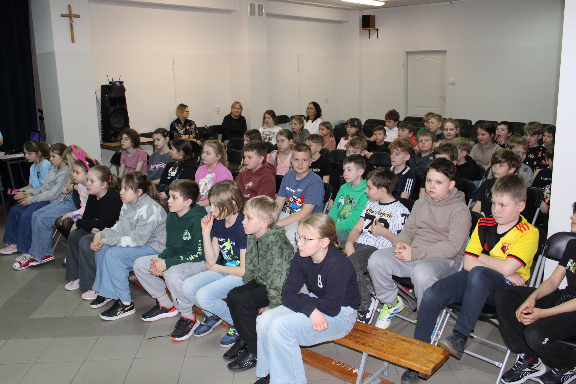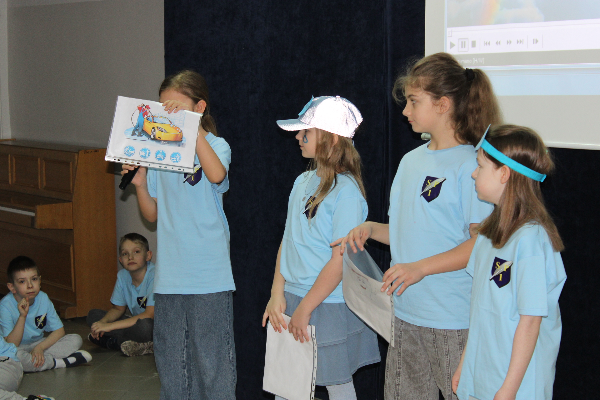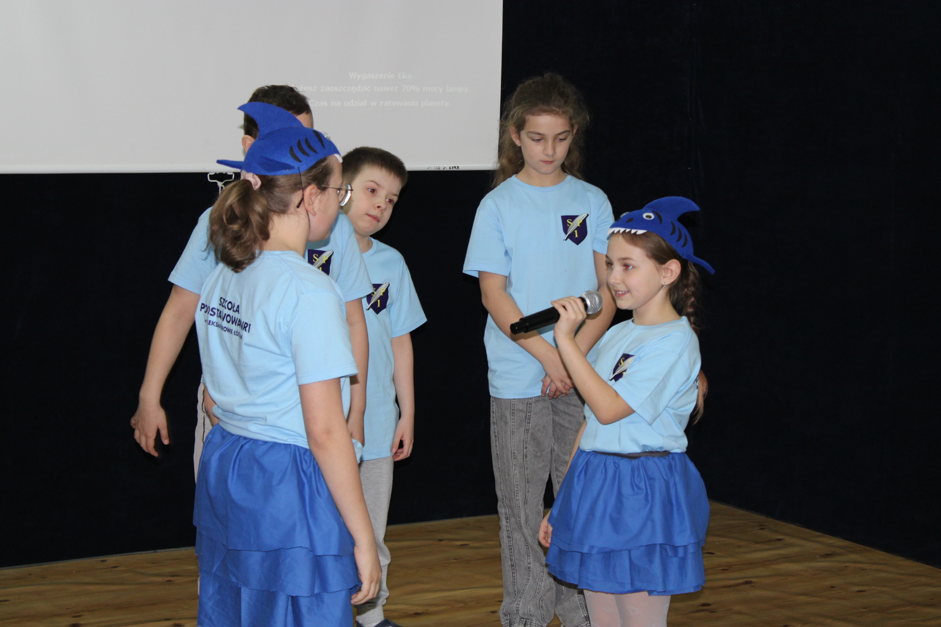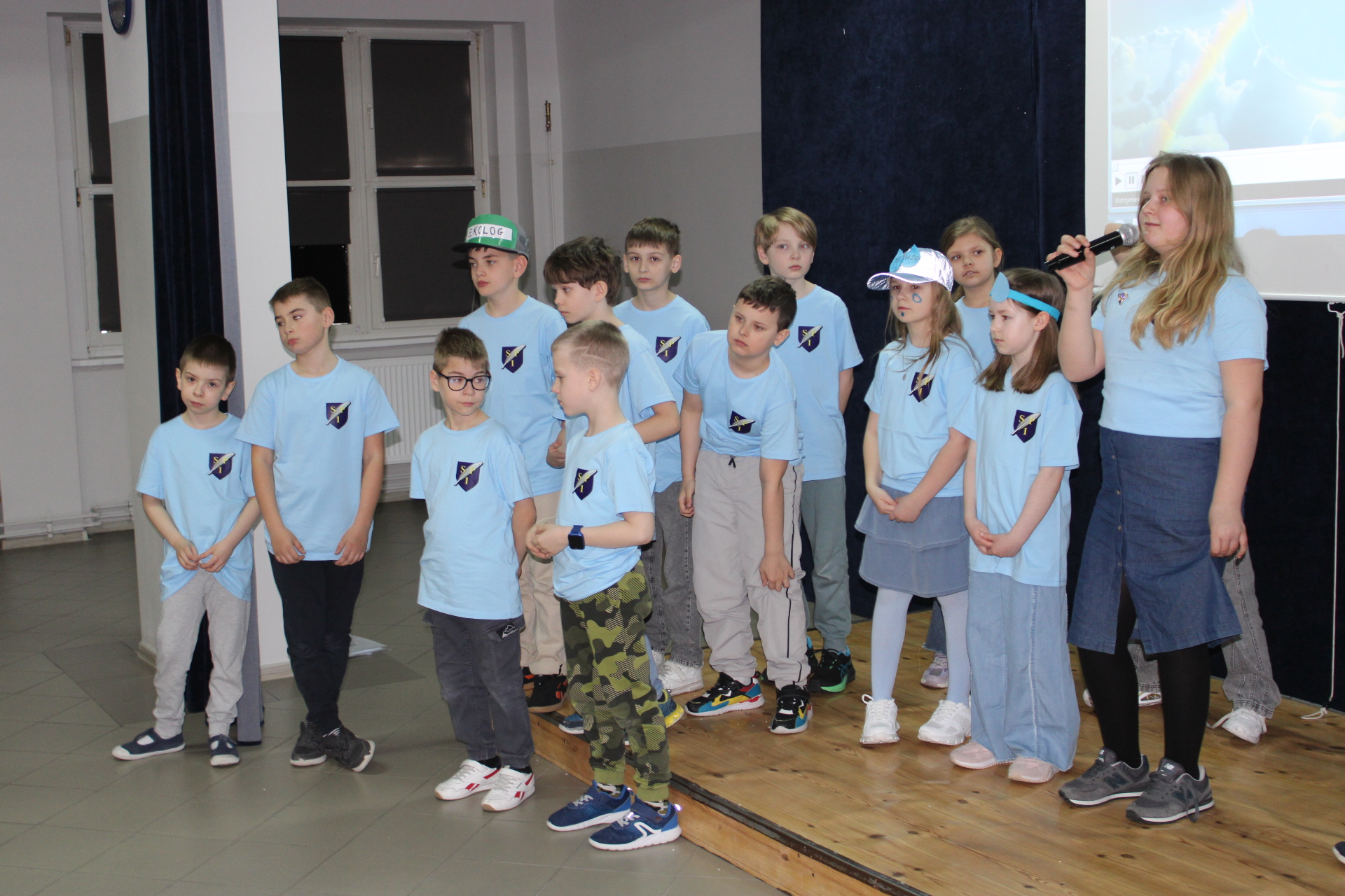 31 marca 2026 r. uczniowie klas młodszych obejrzeli przedstawienie pt "WODA" w wykonaniu dzieci z klasy III a. Wykonawcy przypomnieli, jakie znaczenie ma woda w naszym życiu. Poprzez swój występ dostarczyli widzom wielu niezapomnianych wrażeń. Wszyscy włączyli się do śpiewania piosenki pt." Pijmy wodę". W trakcie przedstawienia panowała cisza i duże zainteresowanie wśród widzów. Stroje wykonawców w pełni pasowały do treści przedstawienia. Trzecioklasisci zaprezentowali się w niebieskich podkoszulkach. Dziękujemy wszystkim za ogromne brawa i ciepłe słowa. Pijmy wodę, zgodnie ze słowami naszej piosenki.