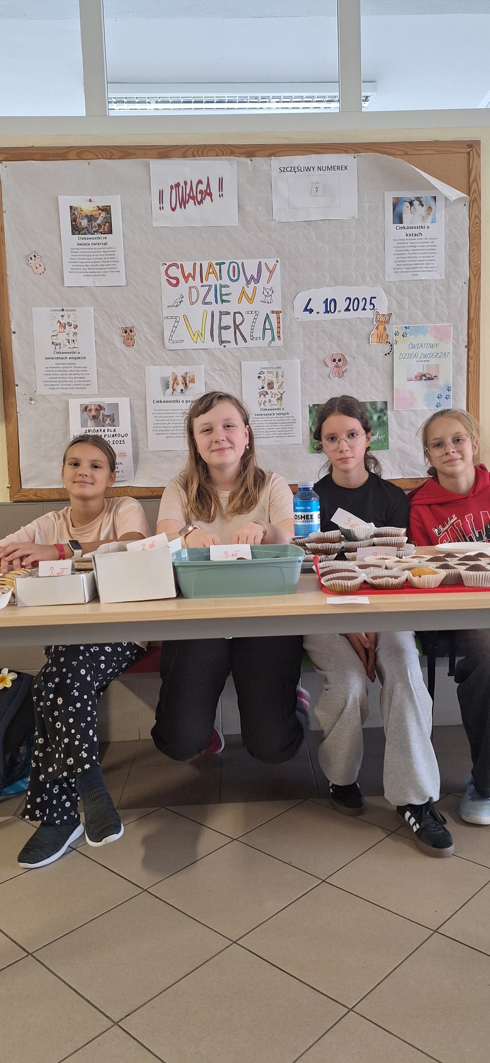 W piątek, 10 października, obchodziliśmy Światowy Dzień Zwierząt. Z tej okazji działał sklepik koleżeński, w którym można było kupić pyszne przekąski, ciasta oraz babeczki - przygotowane przez naszych uczniów i ich rodziców.