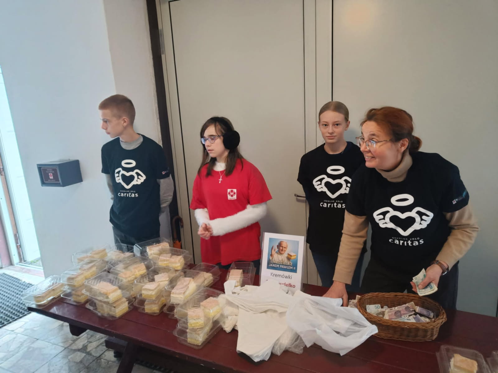 Młodzież i dzieci ze Szkolnego Koła Caritas, jak co roku w tym czasie , uczestniczyła w Akcji Kremówka, zarówno na terenie obu parafii, jak i w szkole podczas Dnia Nauczyciela. Zebrane fundusze zostały przeznaczone w dwóch celach: wsparcie dla rodziny że Zgniłego Błota, która w pożarze straciła dom oraz dofinansowanie nauki dla Caroline Adib z Aleppo. Bardzo dziękujemy Państwu za hojne serca, a wolontariuszom za poświęcony czas. Dobro wraca.