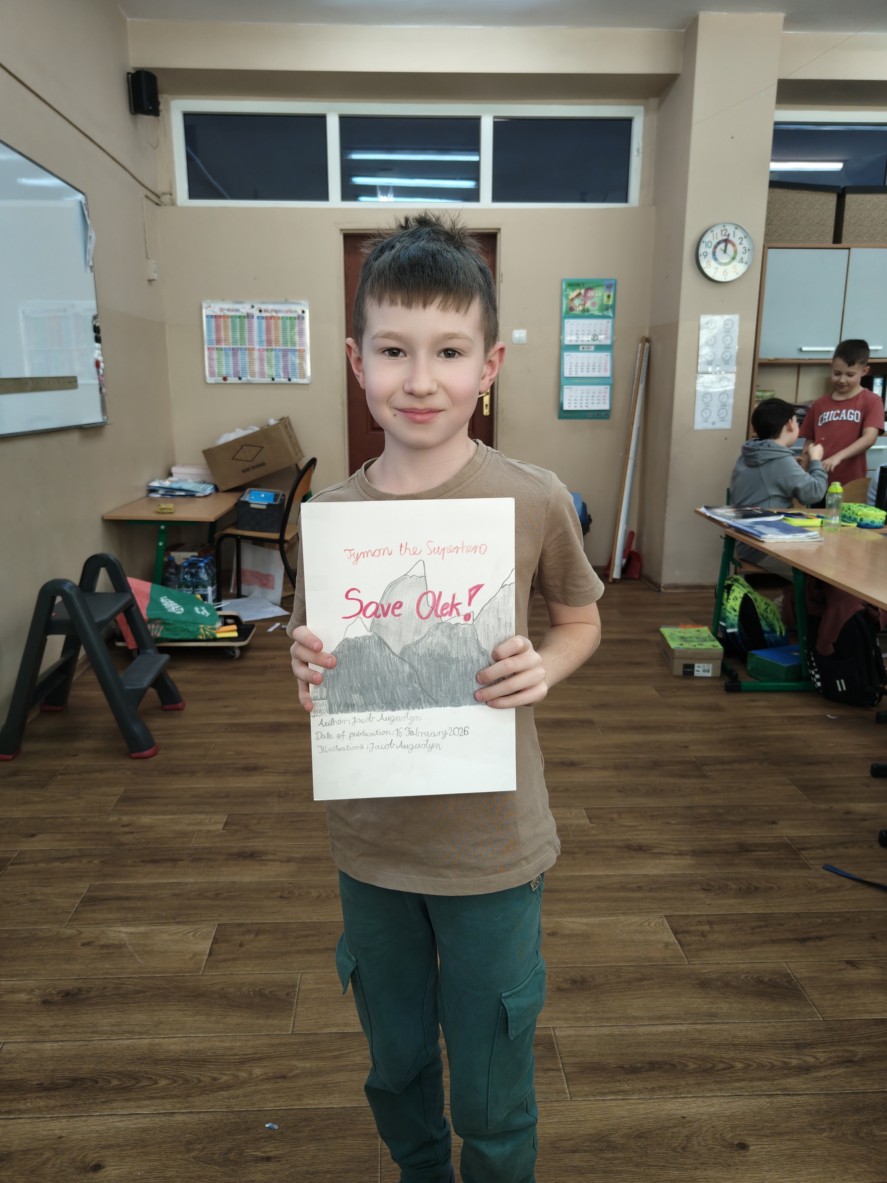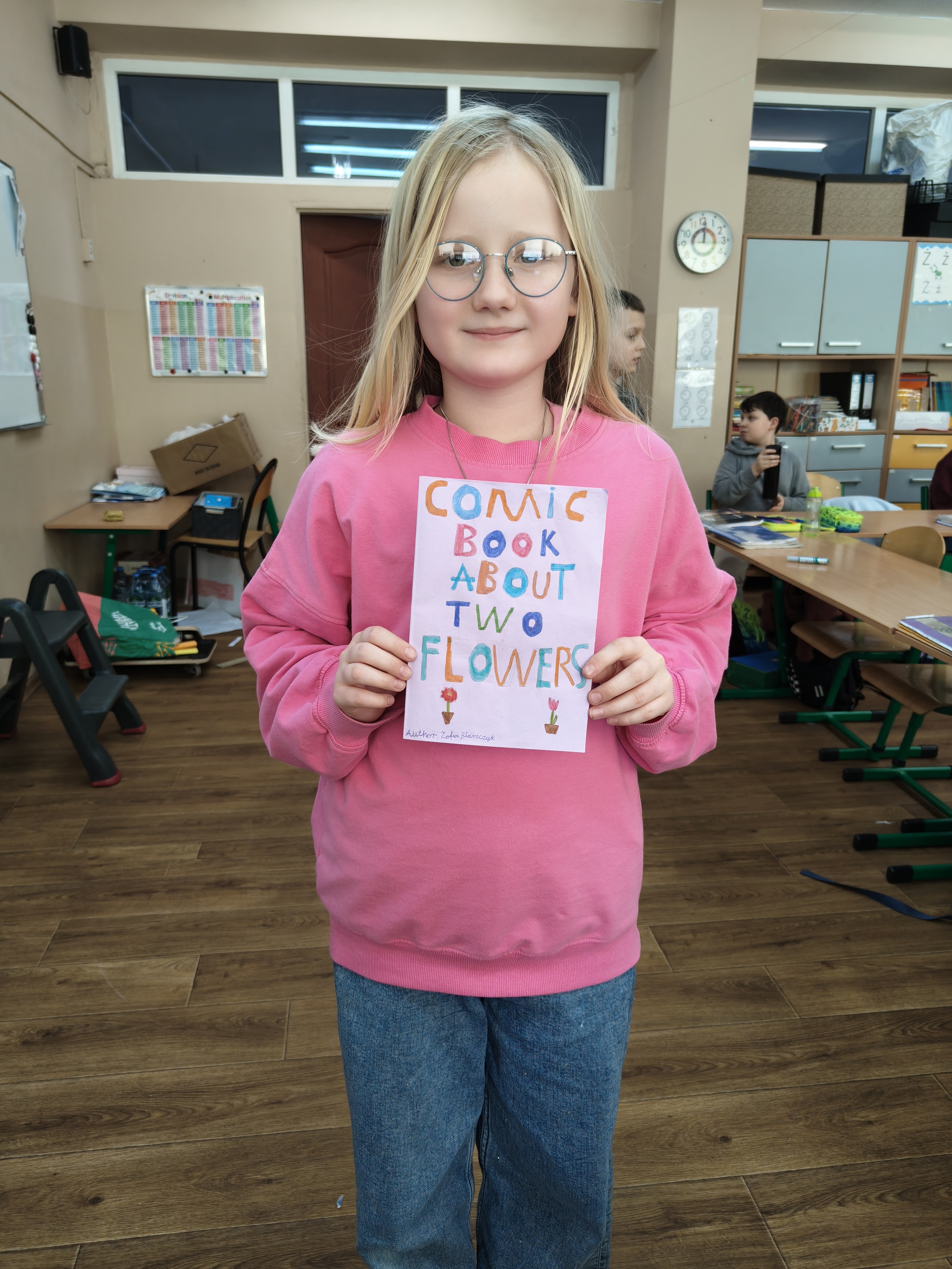 Uczniowie klas :3B, 3C i 3D wraz z Panią Anitą podjęli się wyjątkowego zadania! Samodzielnie stworzyli komiksy na wybrany przez siebie temat. Zaprojektowali okładki, stworzyli dialogi w języku angielskim i zilustrowali ich treść. Komiksy trafiły do szkolnej biblioteki, gdzie każdy uczeń może je wypożyczyć i przeczytać."