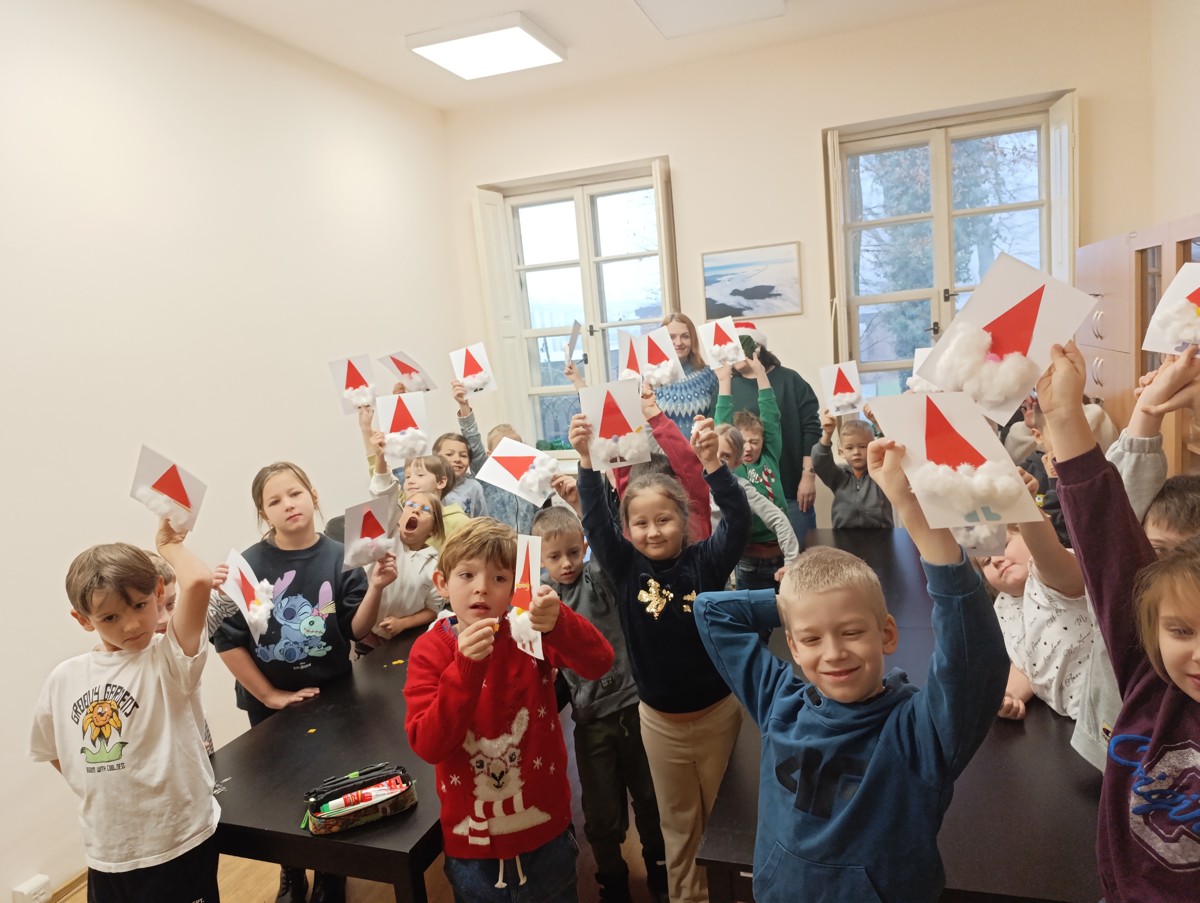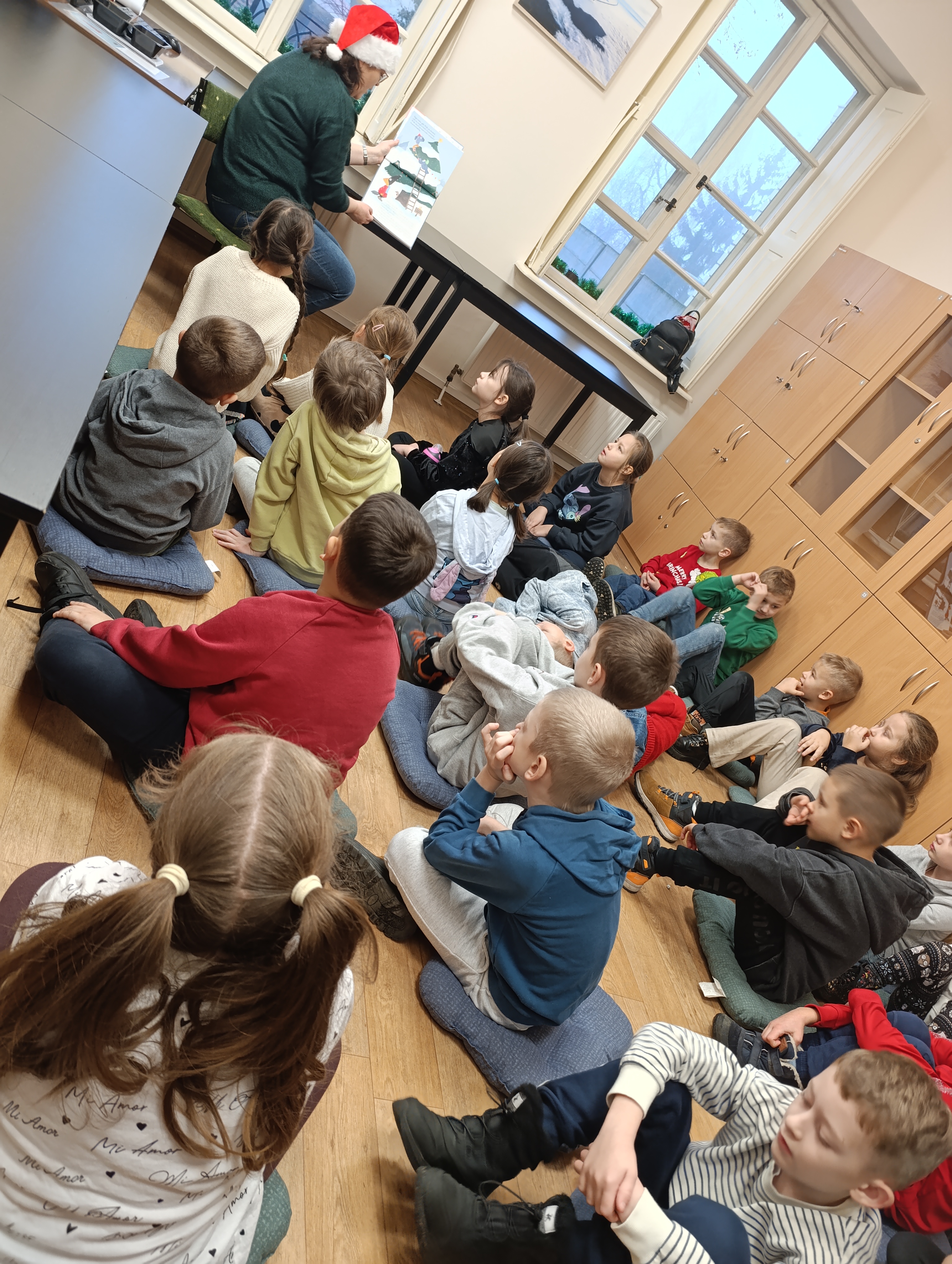 18 grudnia uczniowie klasy 1c wraz z p. Anią i p. Justyną odwiedzili Bibliotekę Publiczną im. J. Machulskiego w Aleksandrowie Łódzkim. Podczas spotkania dzieci z zainteresowaniem wysłuchały opowiadania pt. „O wilku, który nie lubił świąt”, które w ciepły i humorystyczny sposób pokazało, jak ważne są życzliwość, przyjaźń i magia wspólnie spędzanego czasu. Historia wilka pomogła dzieciom zrozumieć, że święta to nie tylko prezenty, ale przede wszystkim radość bycia razem. Następnie uczniowie poznali tradycje bożonarodzeniowe z różnych stron świata. Na zakończenie wizyty wykonali prace plastyczne – kolorowe Mikołaje, które będą zdobiły wnętrza biblioteki.