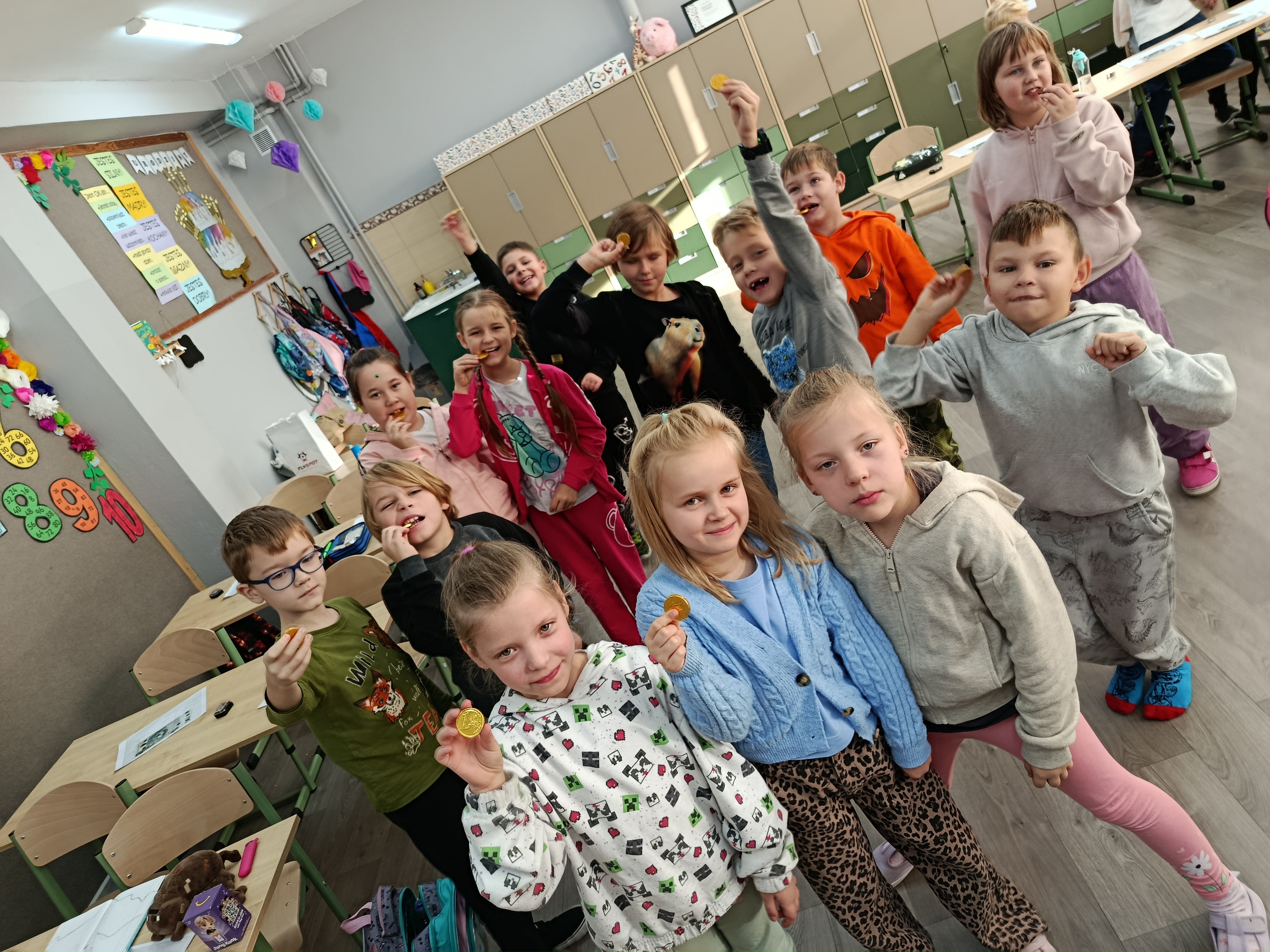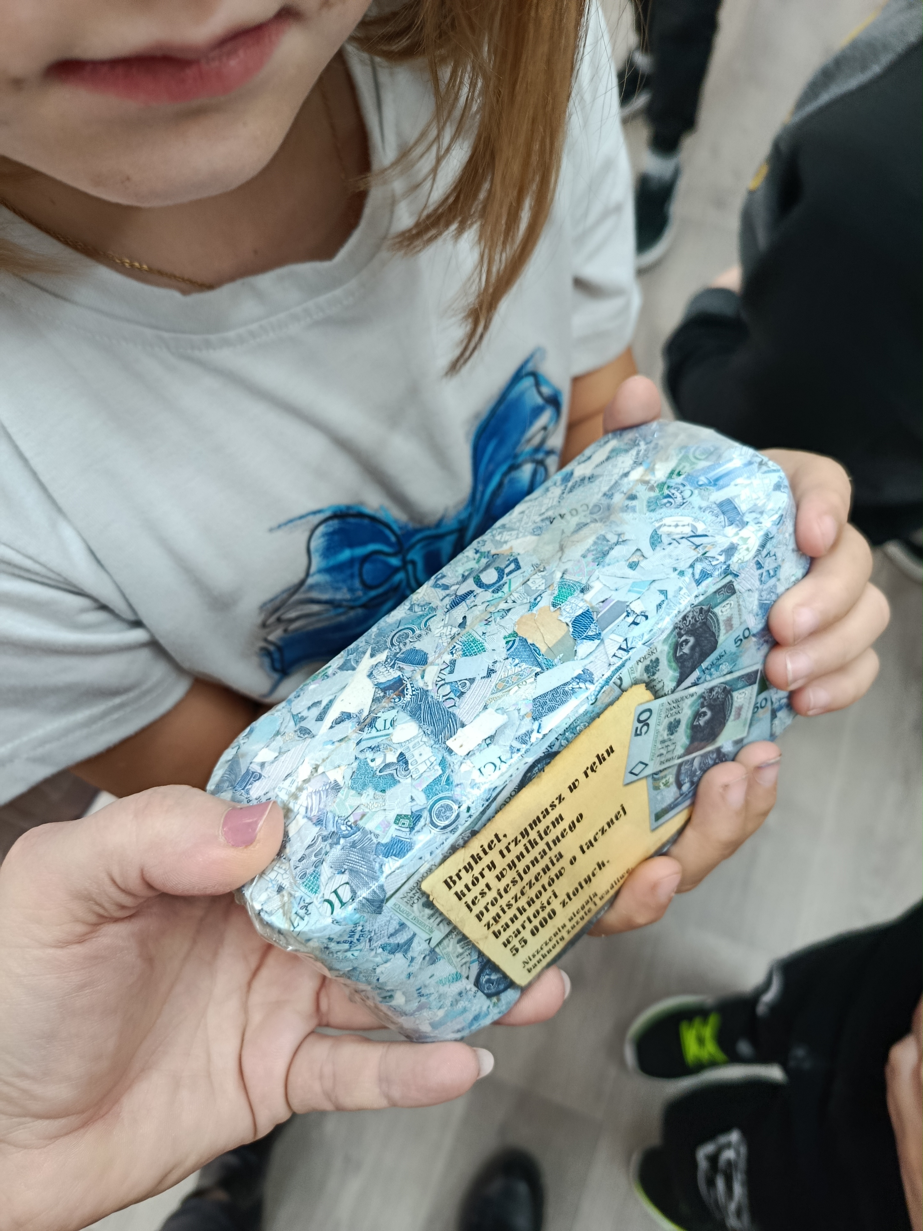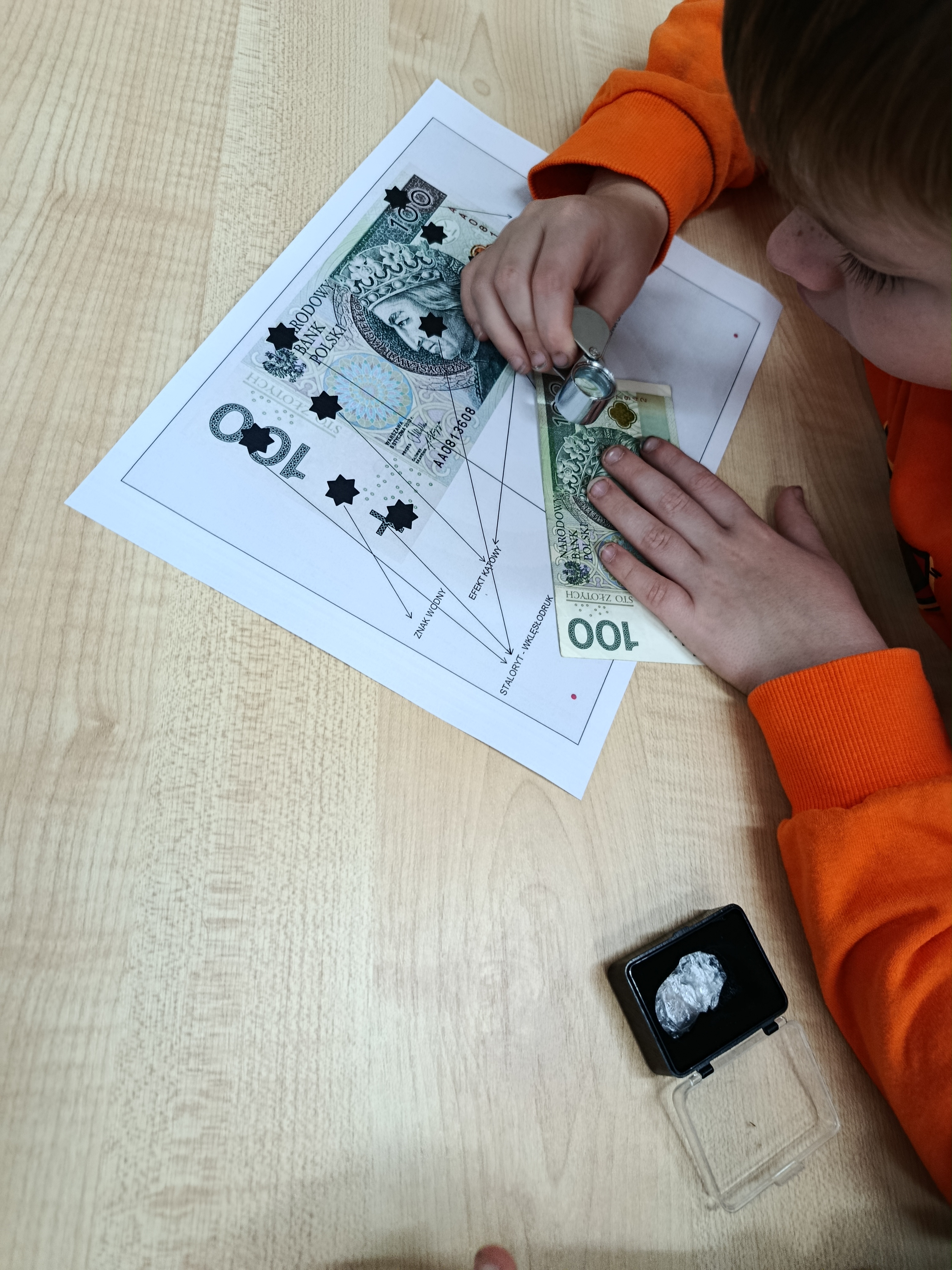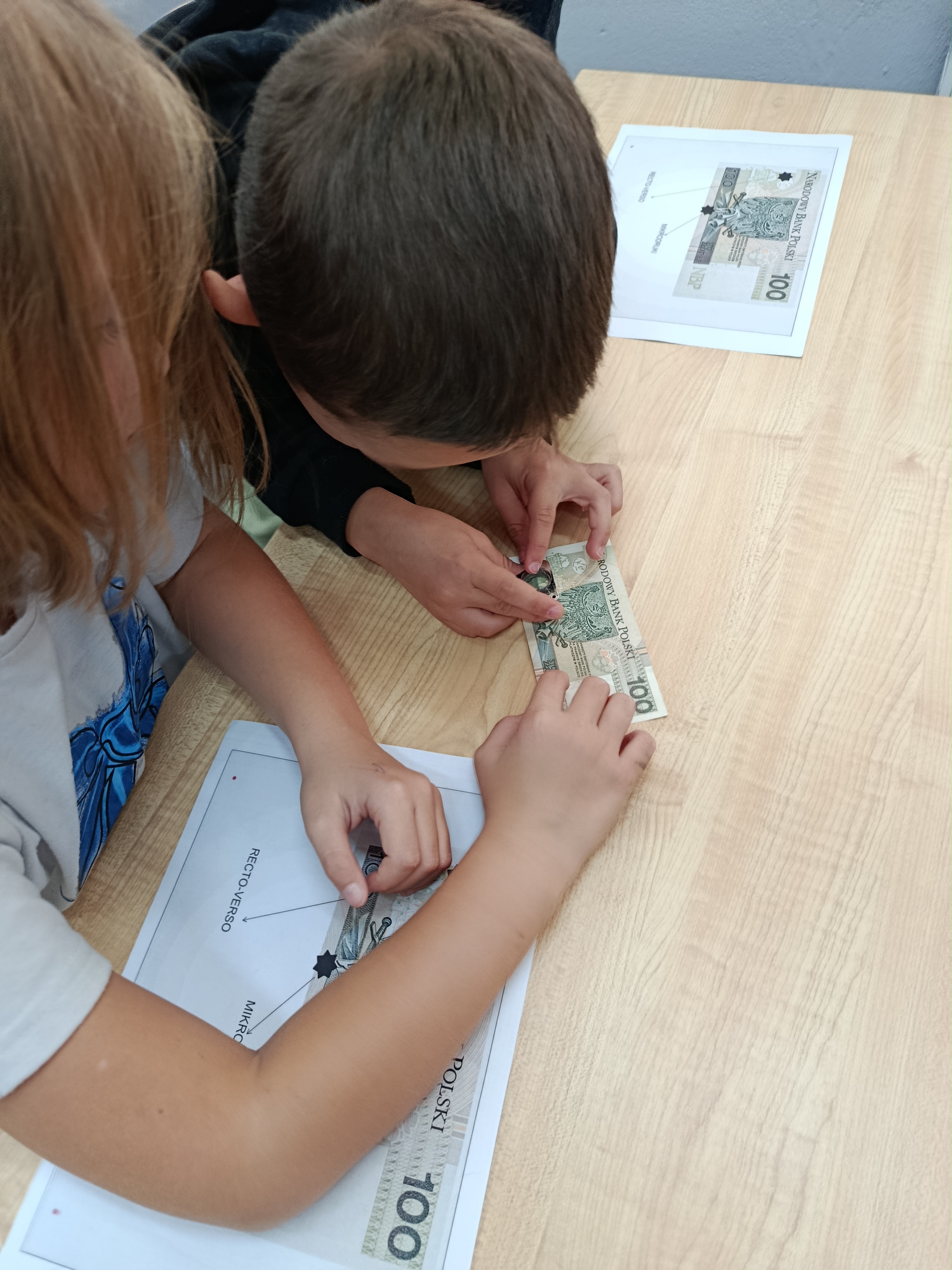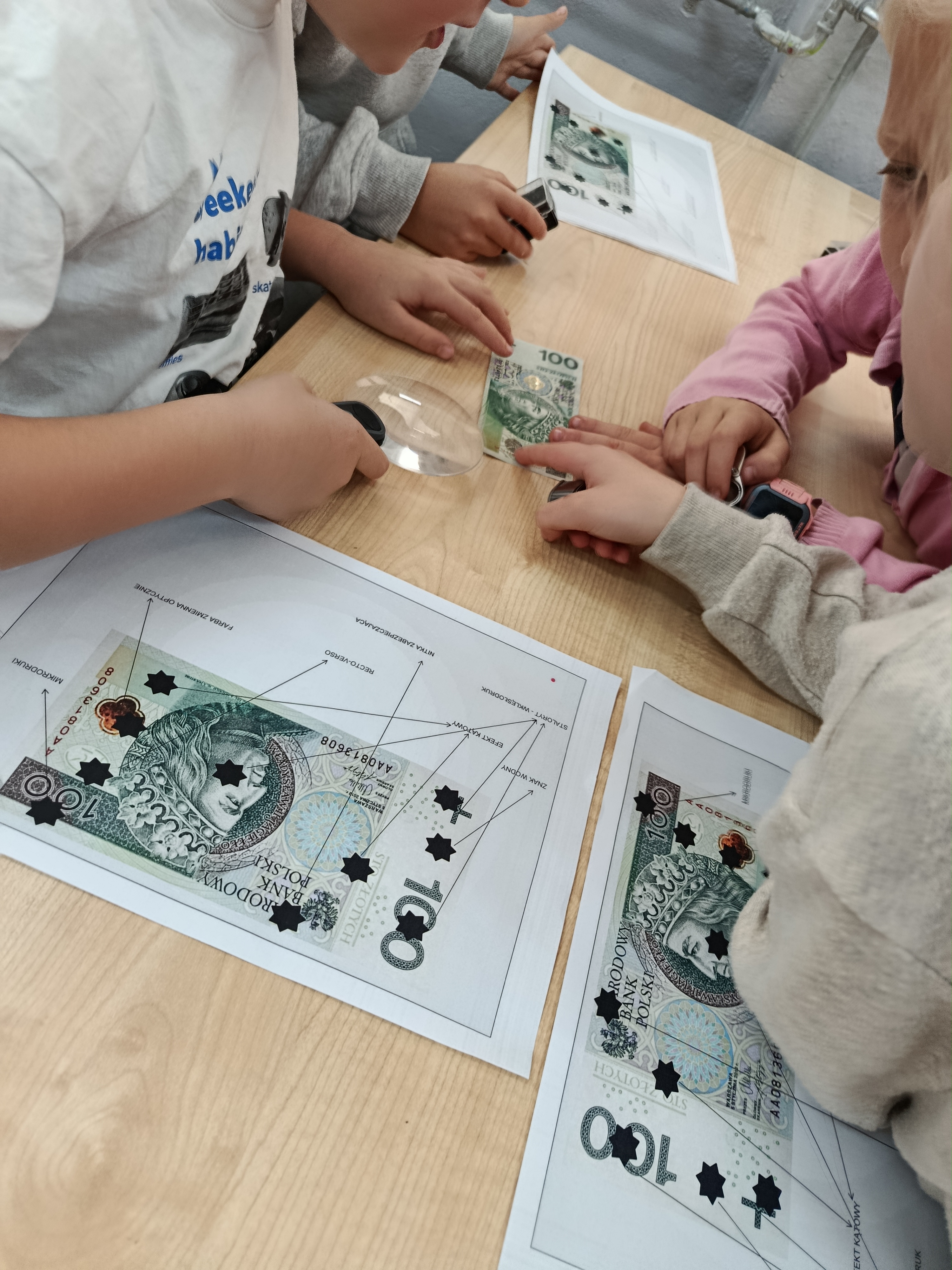 W dniu dzisiejszym uczniowie klasy 2d brali udział w zajęciach p. Magdalenę Rojewską. Dowiedzieli się jak i gdzie powstają pieniądze, jakie są nominały, ale przede wszystkim pracowali z lupami podczas poznawania tajników wszystkich zabezpieczeń umieszczonych na banknotach. Wyzwaniem było odróżnienie prawdziwego od fałszywego pieniądza. Zobaczyliśmy również co dzieje się z banknotami zniszczonymi i nie nadającymi się do ponownego obiegu. Na koniec każde dziecko otrzymało pyszne czekoladowe euro oraz dyplomy, za co ogromnie dziękujemy❤️. Czekamy zniecierpliwieni na kolejne spotkanie.